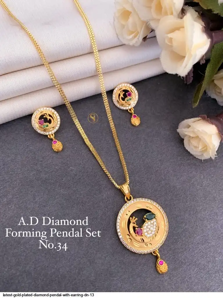 LATEST GOLD PLATED DIAMOND PENDAL WITH EARRING DN 13