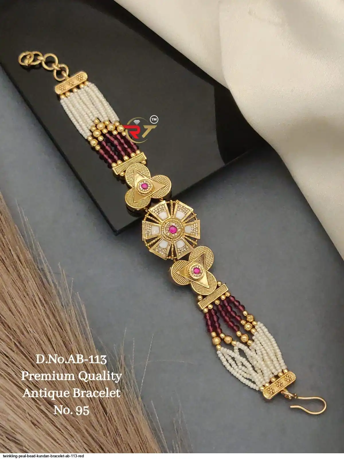 TWINKLING PEAL BEAD KUNDAN BRACELET AB 113 RED