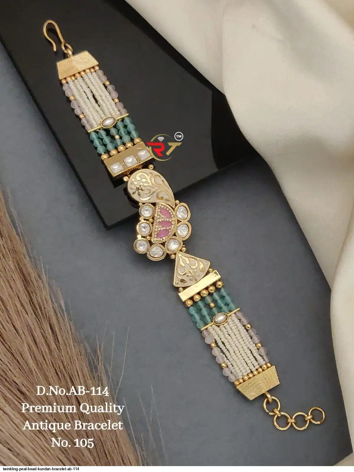 TWINKLING PEAL BEAD KUNDAN BRACELET AB 114