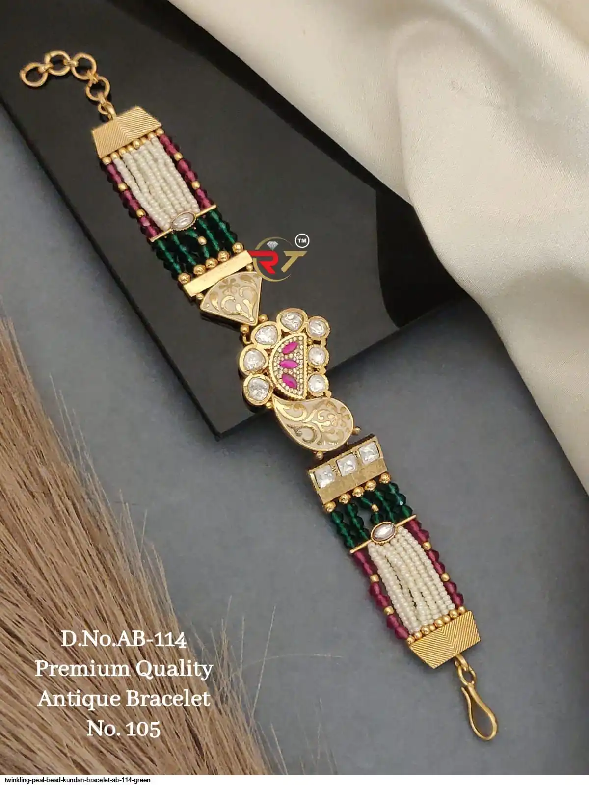 TWINKLING PEAL BEAD KUNDAN BRACELET AB 114 GREEN