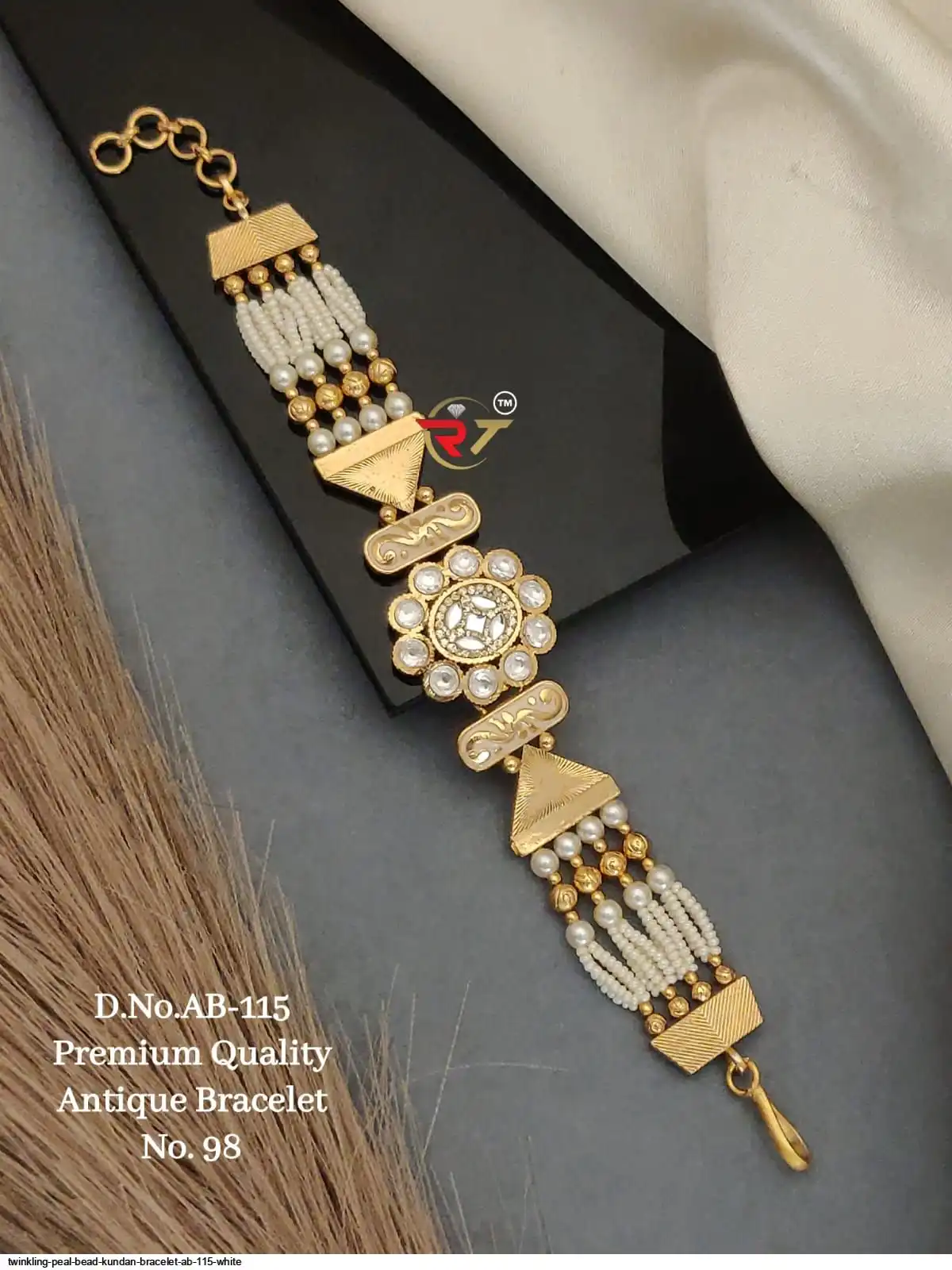 TWINKLING PEAL BEAD KUNDAN BRACELET AB 115 WHITE