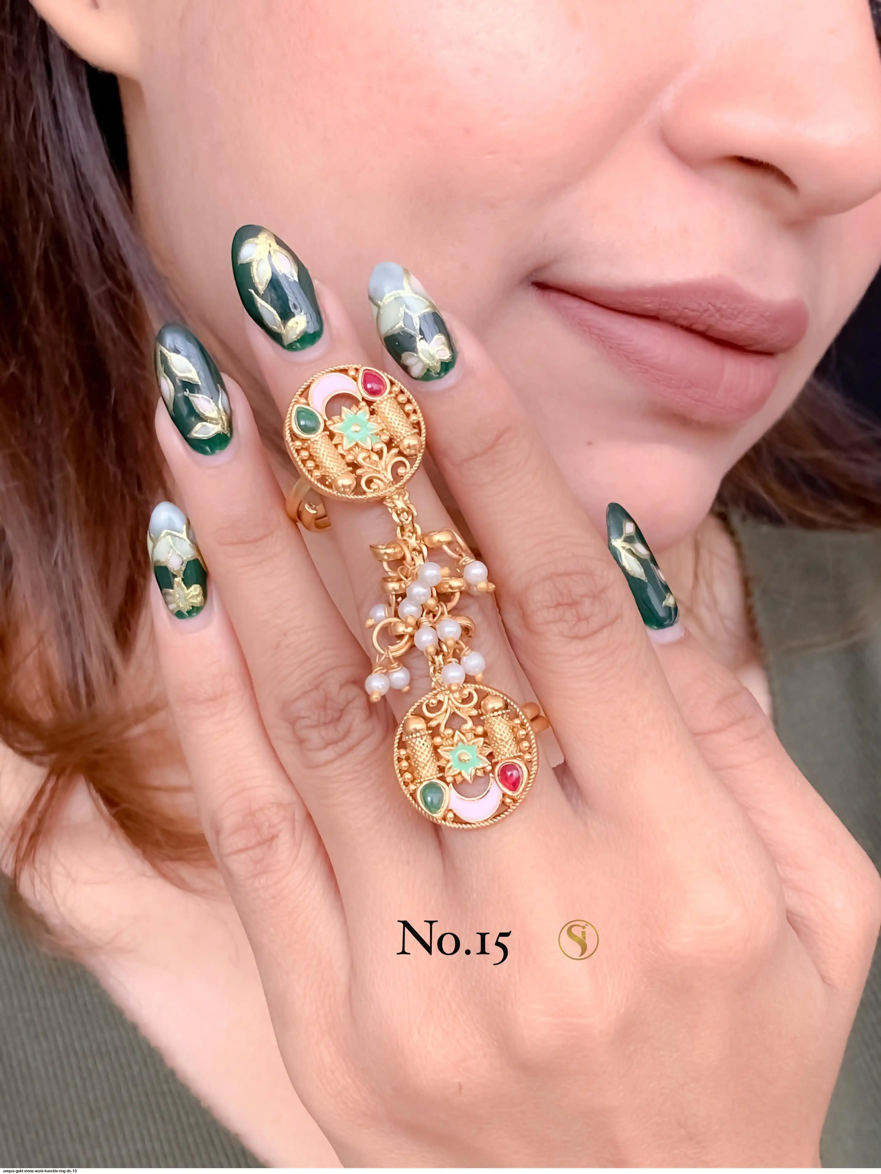 UNIQUE GOLD STONE WORK KUNCKLE RING DN 10