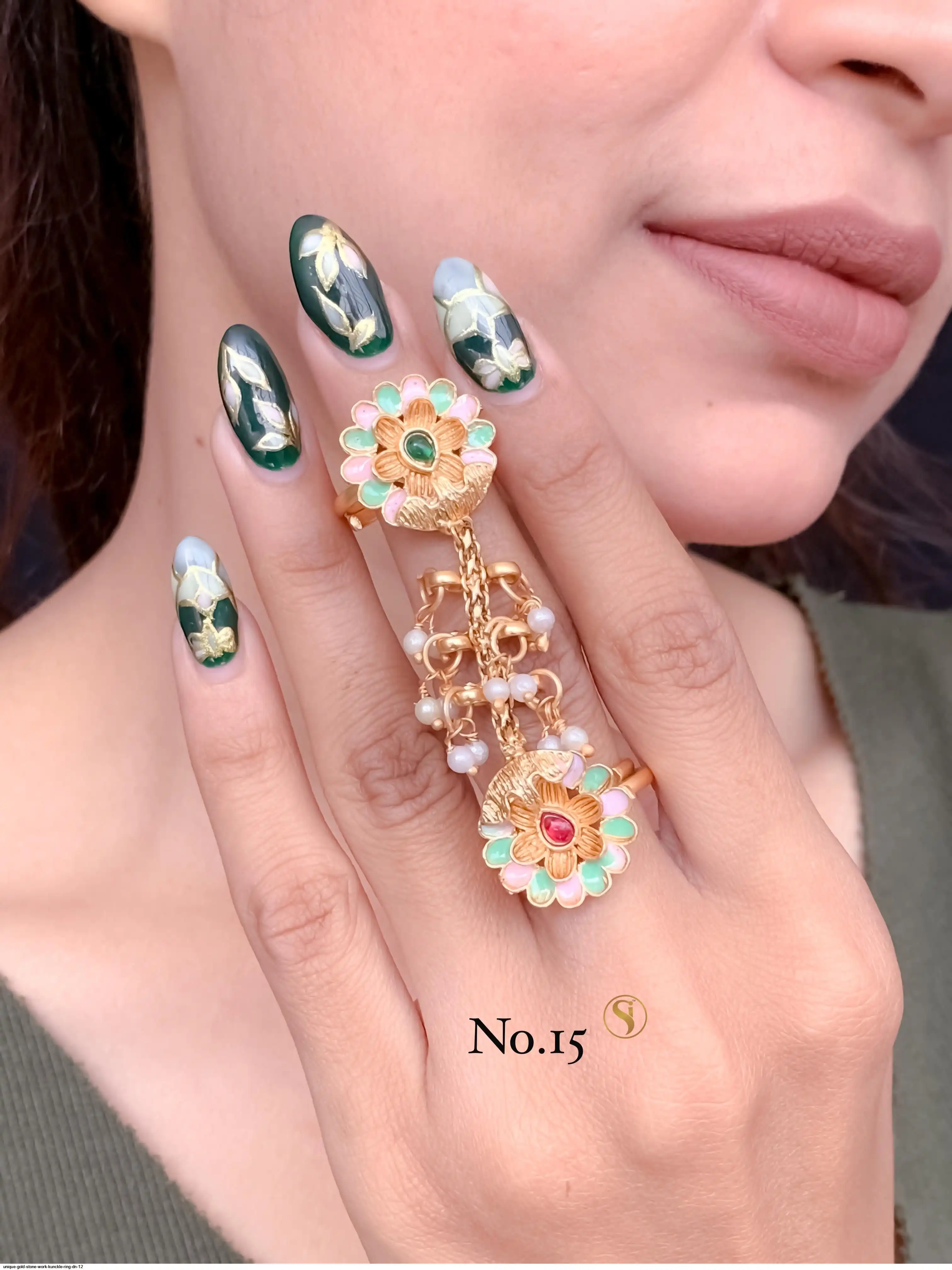 UNIQUE GOLD STONE WORK KUNCKLE RING DN 12