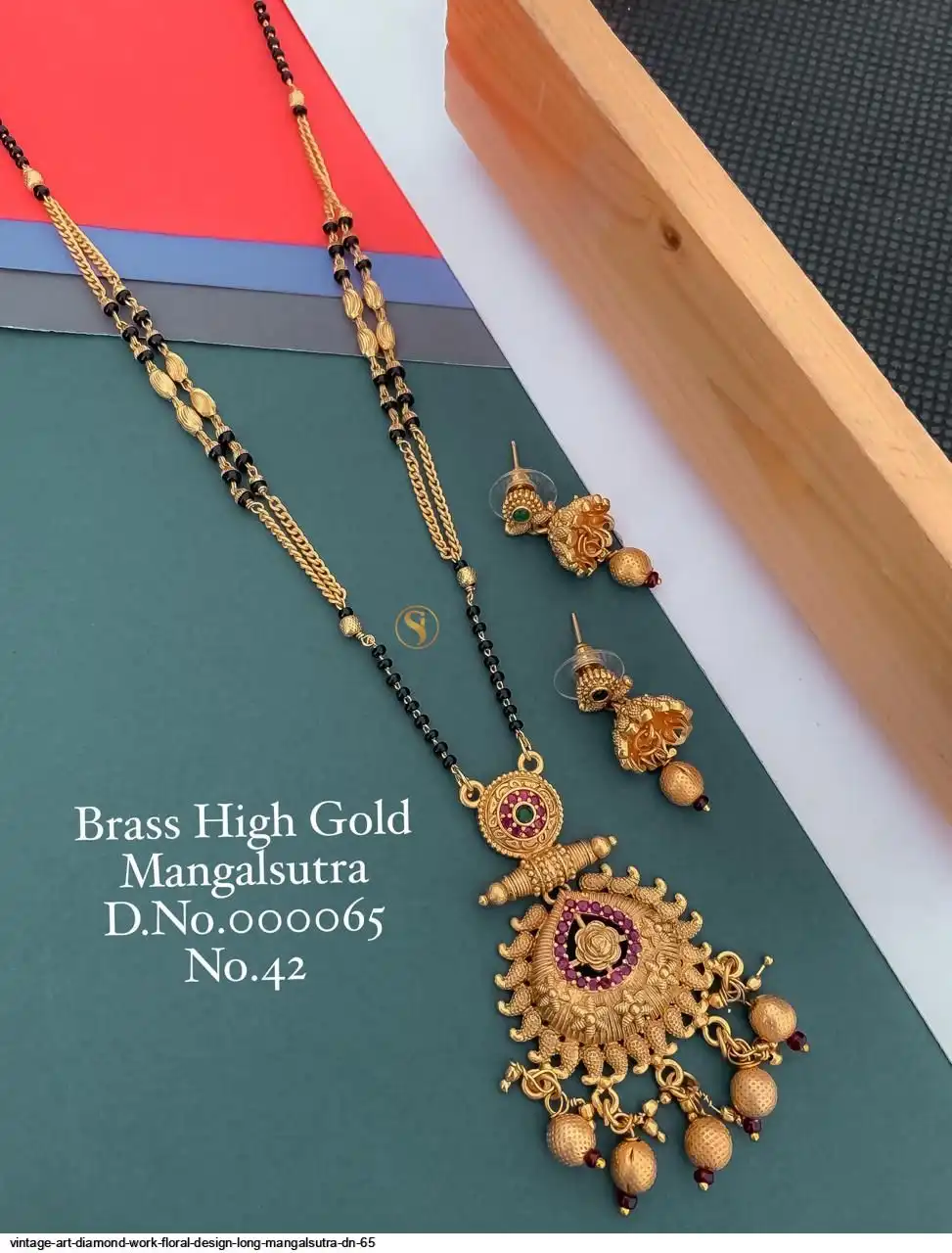 • VINTAGE ART DIAMOND WORK FLORAL DESIGN LONG MANGALSUTRA DN 65