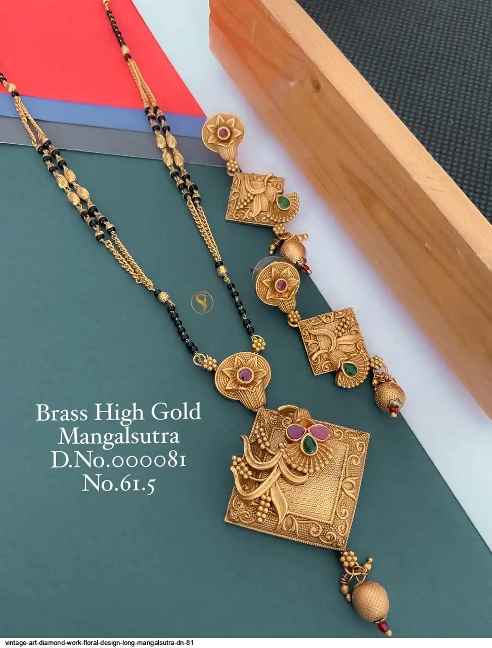 • VINTAGE ART DIAMOND WORK FLORAL DESIGN LONG MANGALSUTRA DN 81