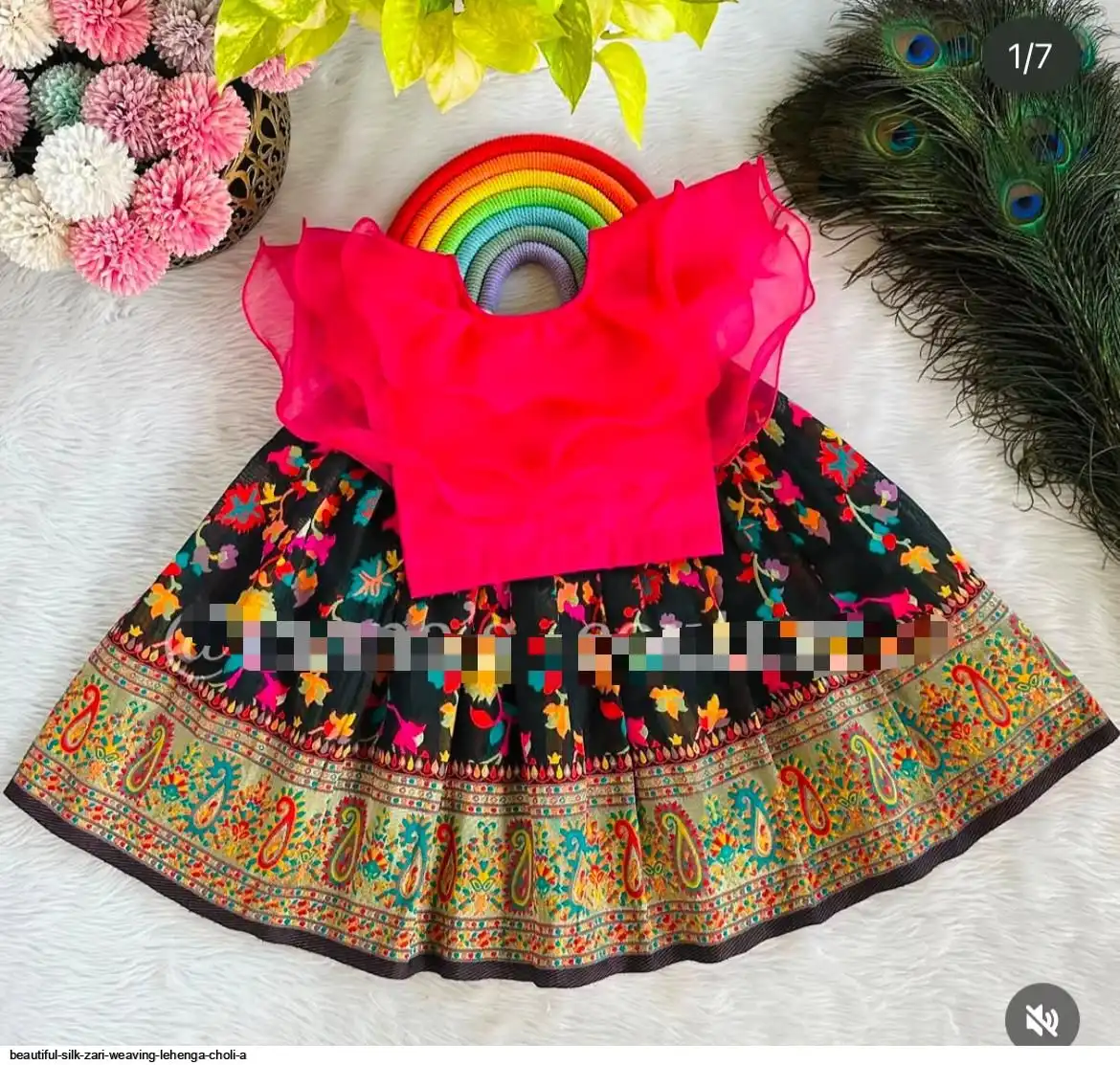 Soft Printed Work on Zari Silk with Beautiful Weaving Lahenga with Golden Zari Weaving Border Design