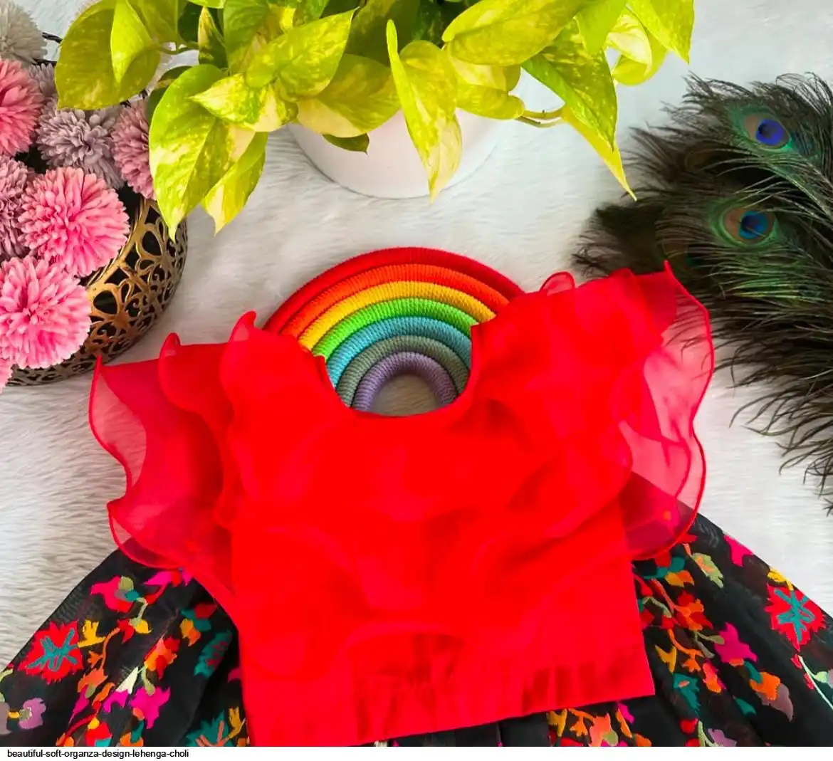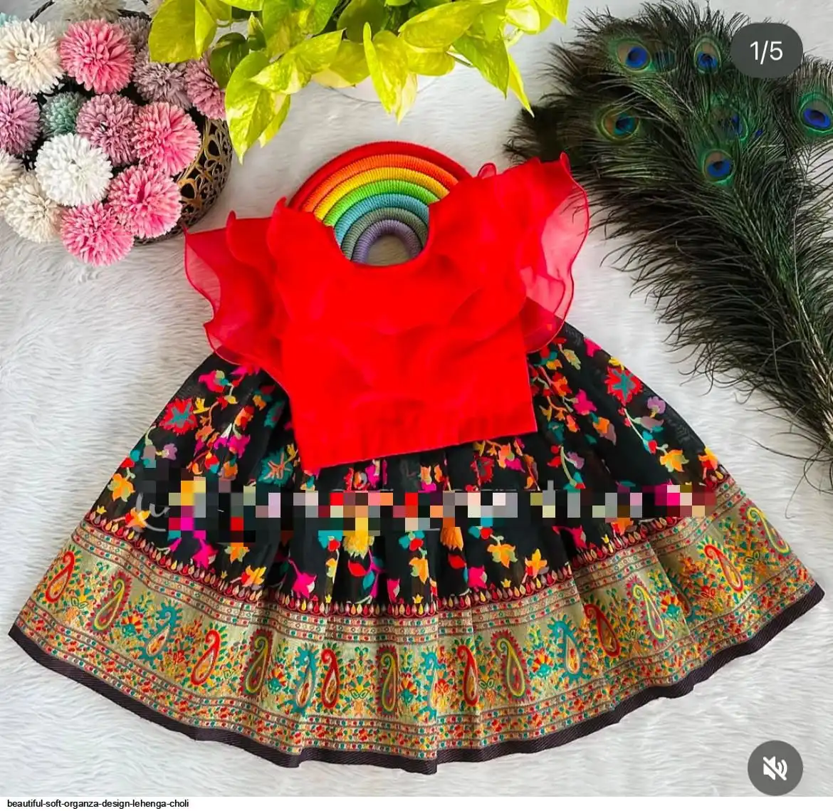 Soft Printed Work on Zari Silk with Beautiful Weaving Lahenga with Golden Zari Weaving Border Design