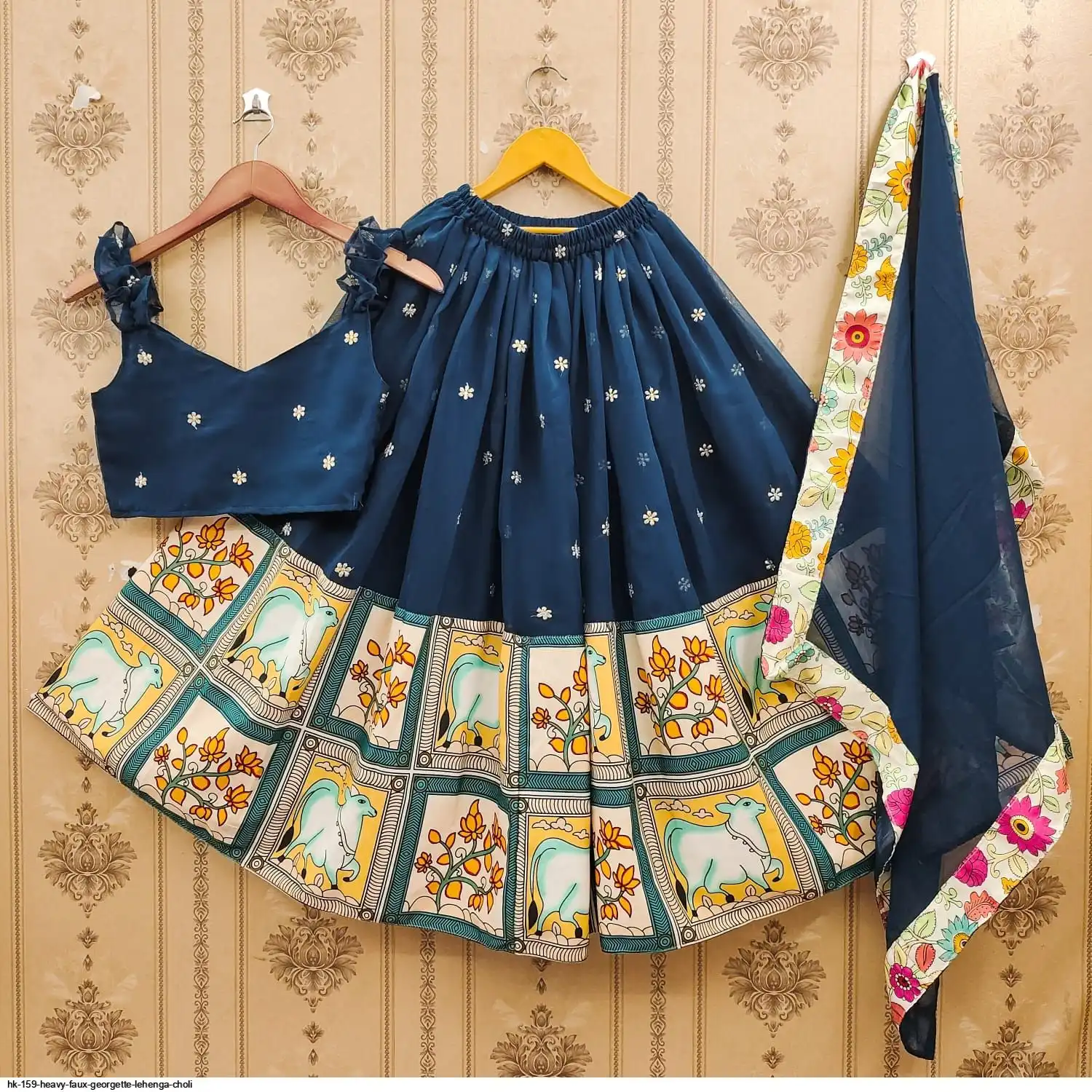 🔹FABRIC :-Heavy Georgette With Embroidery Work & Digital Print Border