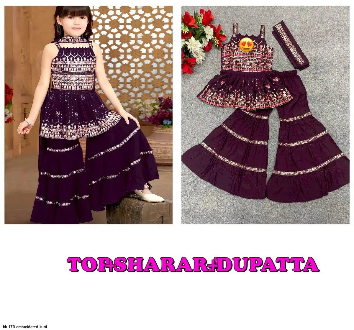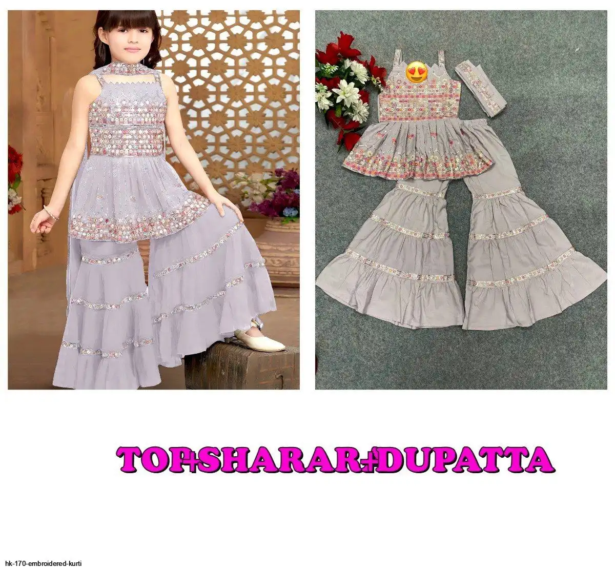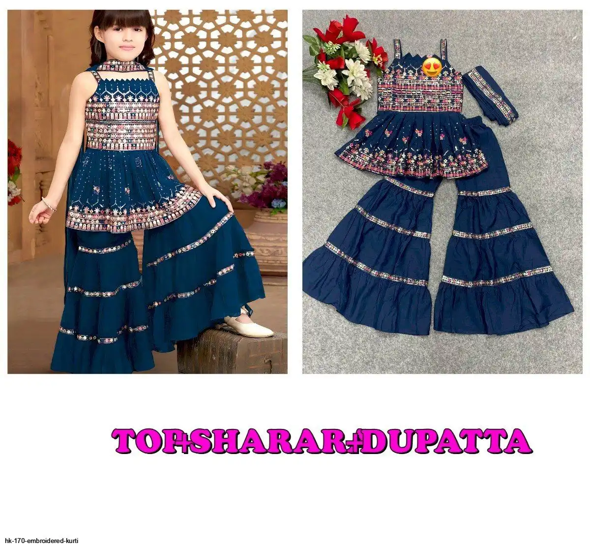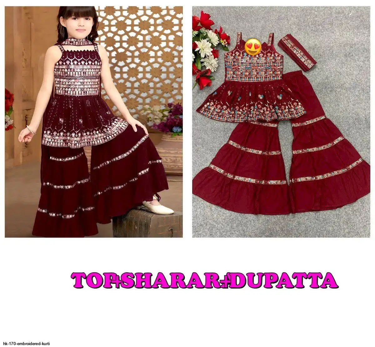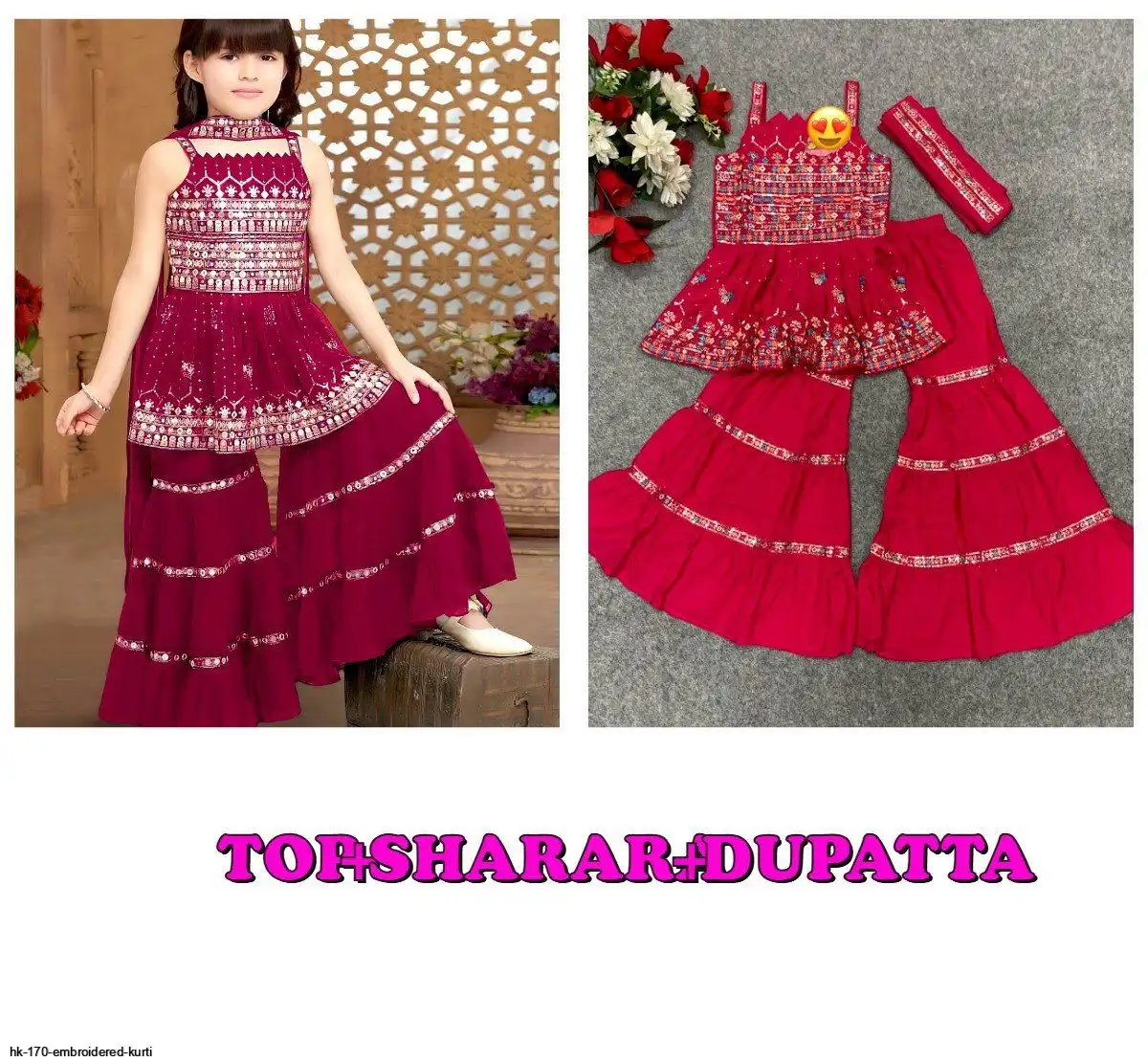 Kids Wear Attarctive 3 Pis TOP & Sharara With Dupatta Set