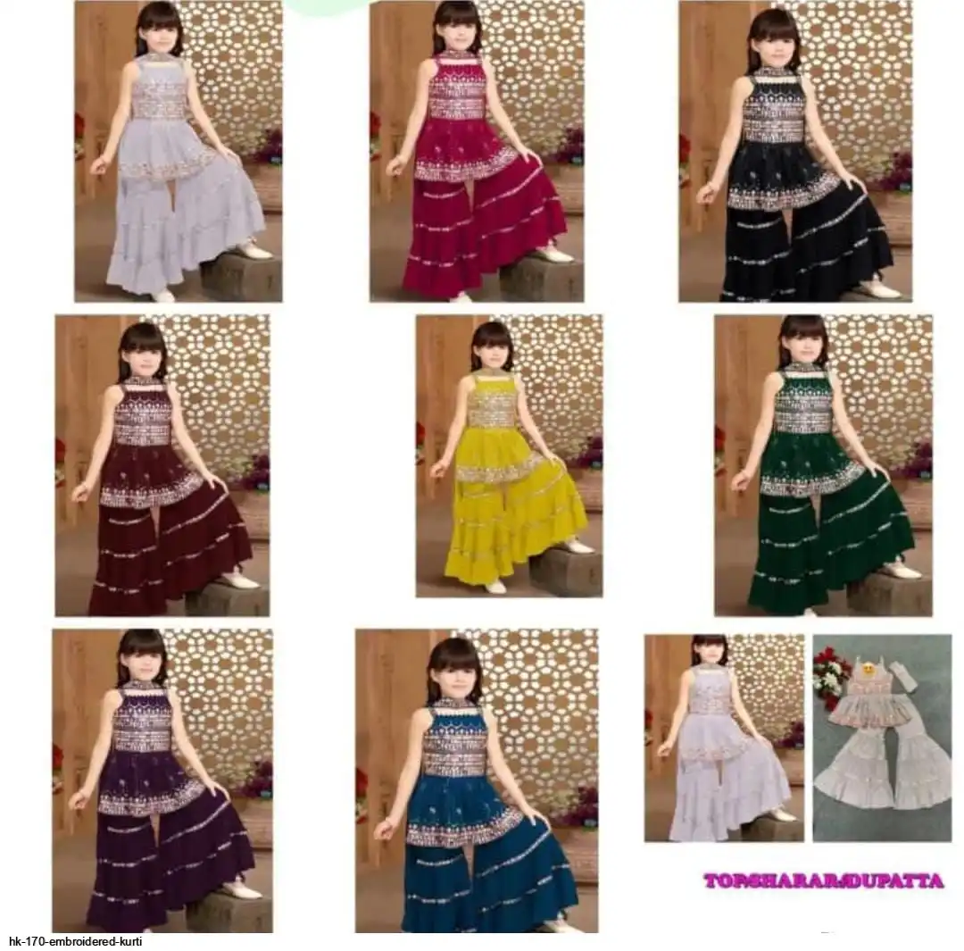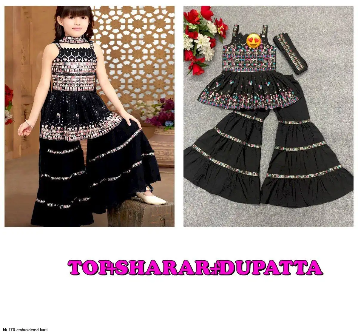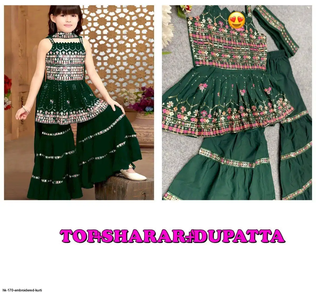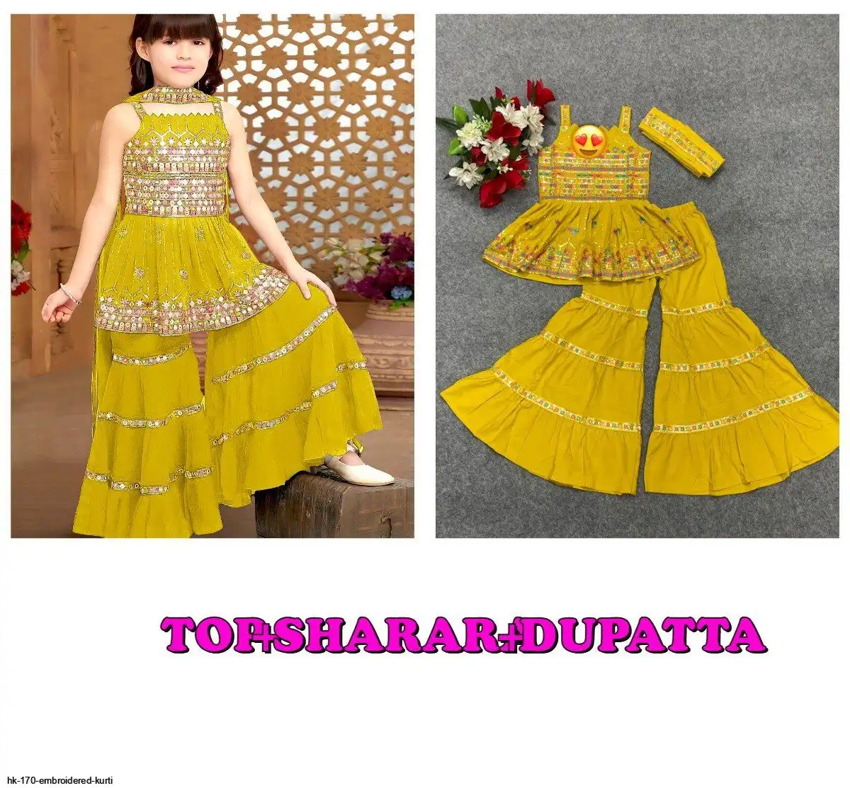 Kids Wear Attarctive 3 Pis TOP & Sharara With Dupatta Set