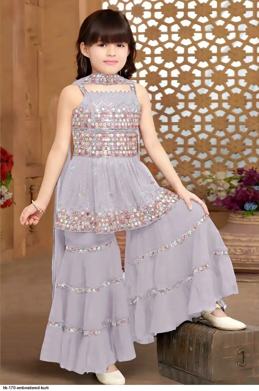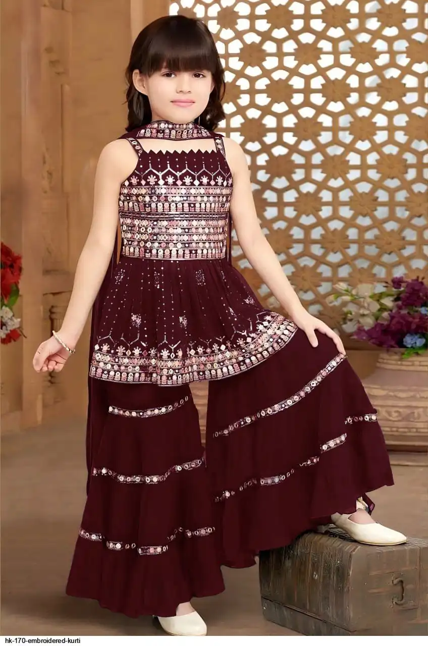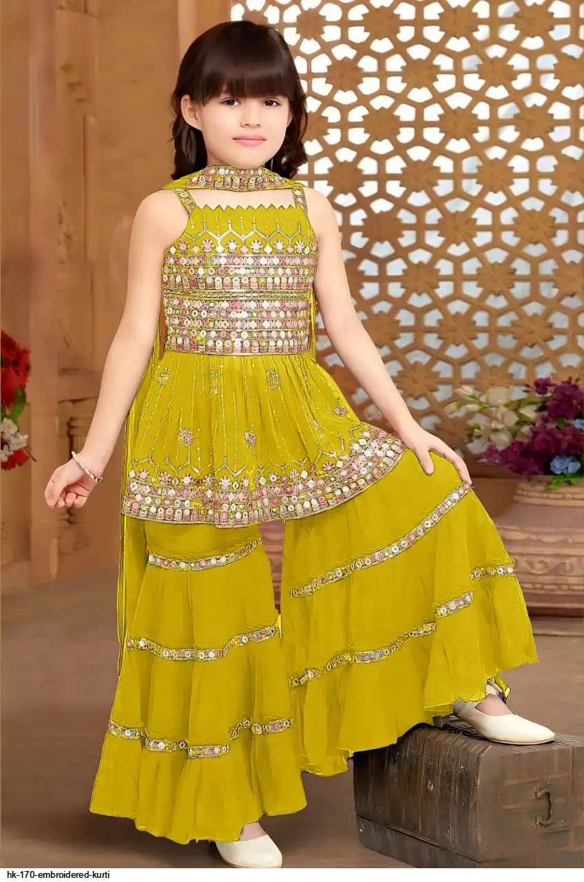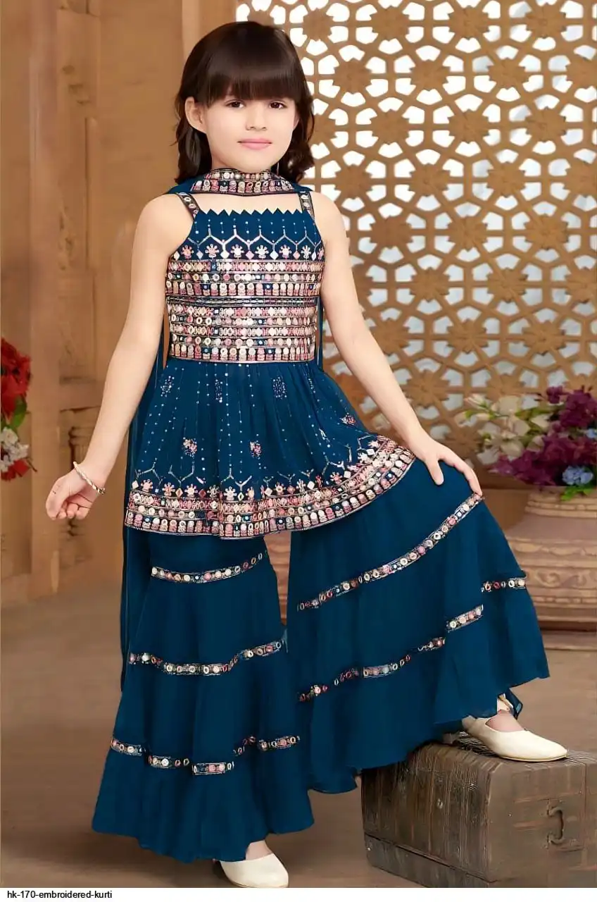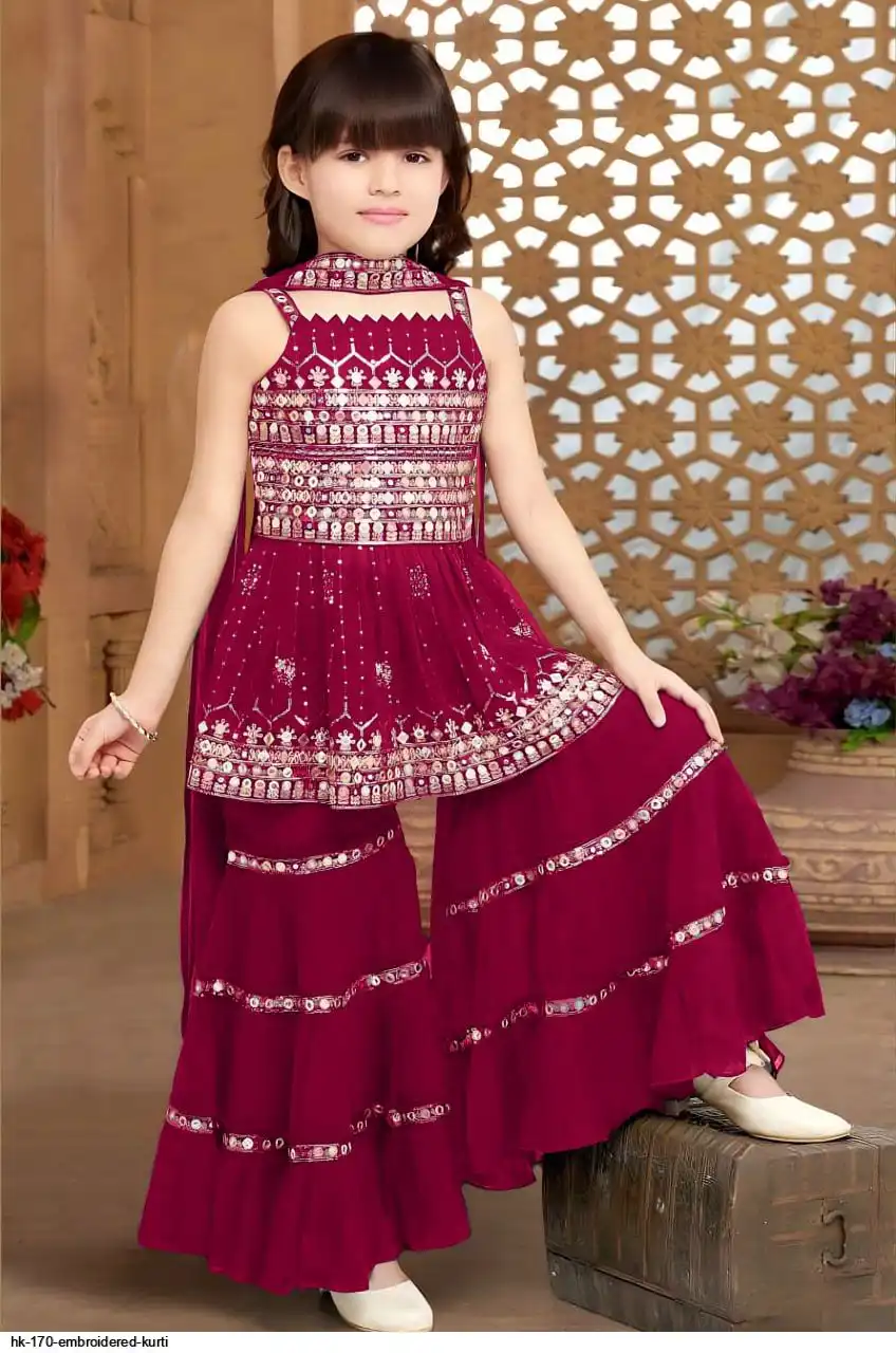 Kids Wear Attarctive 3 Pis TOP & Sharara With Dupatta Set