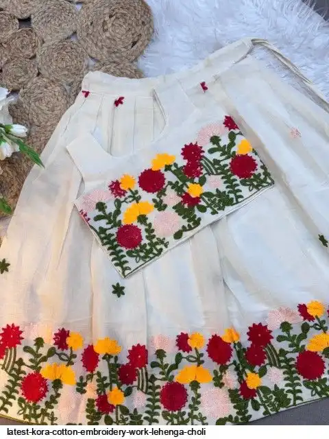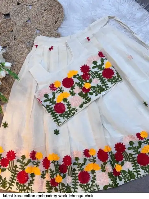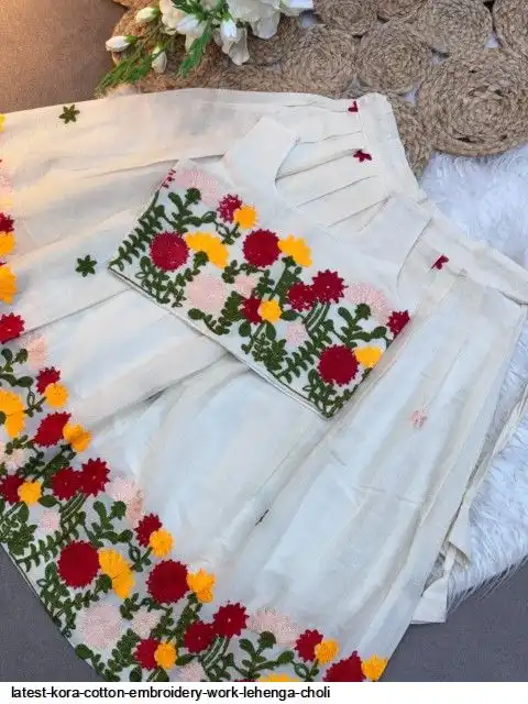 Fabric:-Soft kora cotton With colourfull thread Waving Fabric, All Are emrodeiry Pattern Design