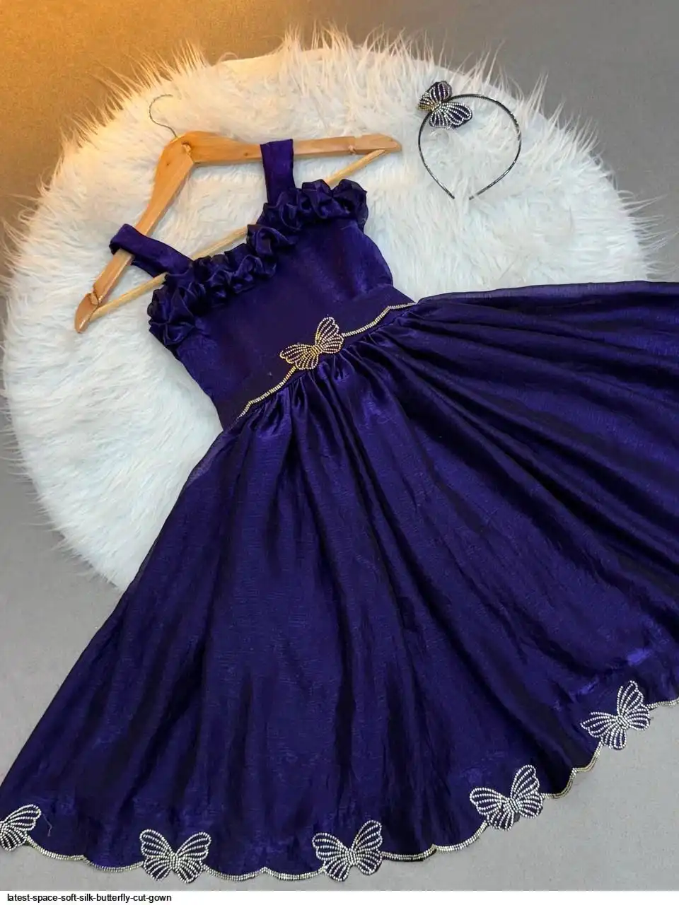 RICH DIAMOND WORK BUTTER FLY CUT HAND WORK PANEL GOWN