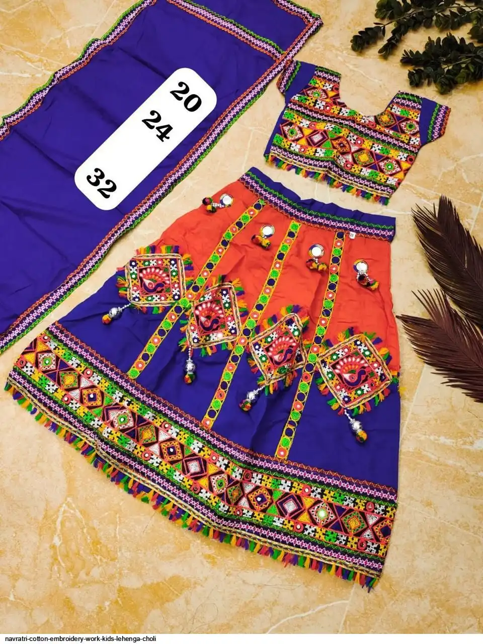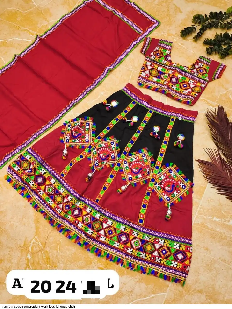 LEHENGA : Reone Cotton WITH Chain Stitch Embroidery Work and Real Mirror Work..doble flair