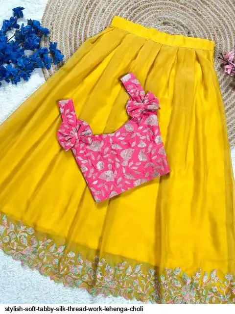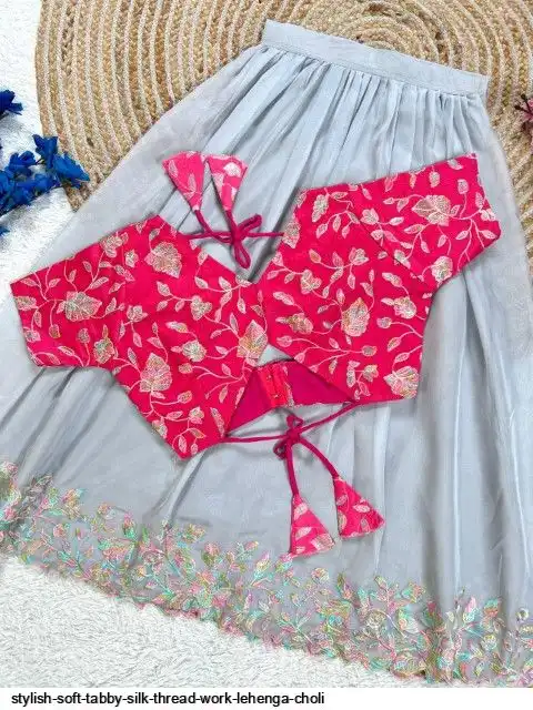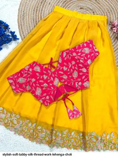 Lehenga Fabric :- Soft Tabby Silk Fabric Along With Thread Work
