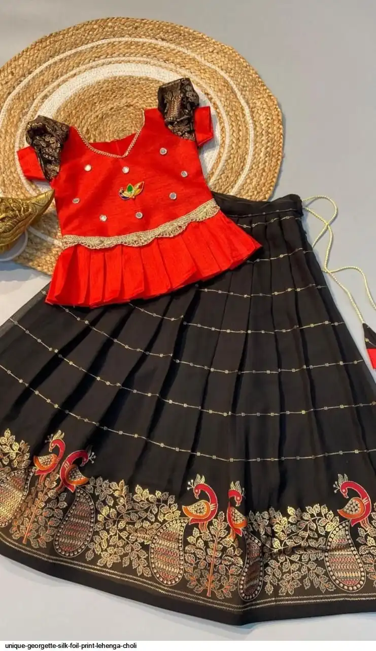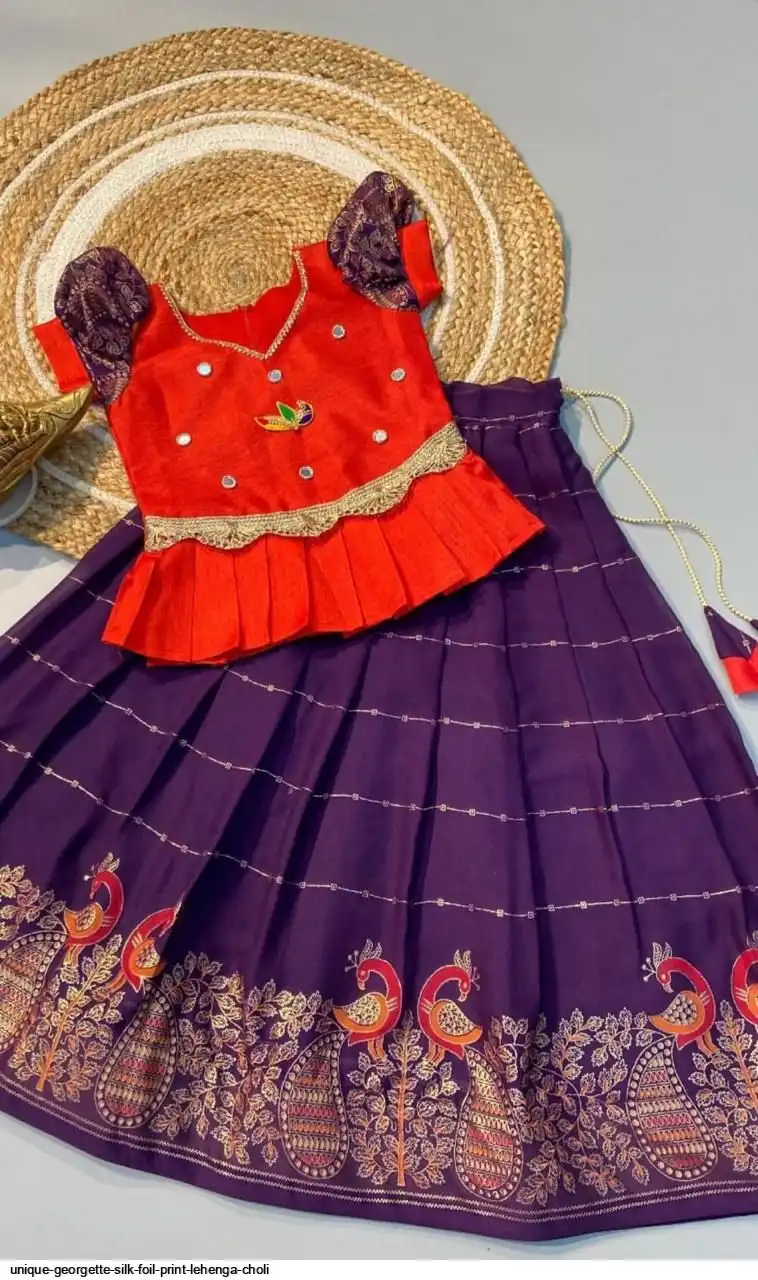 Lehenga - Heavy pure Bamber viscose georgette silk with peacocks foil print pattu border lehenga attached border belt and unique tassels and canvas