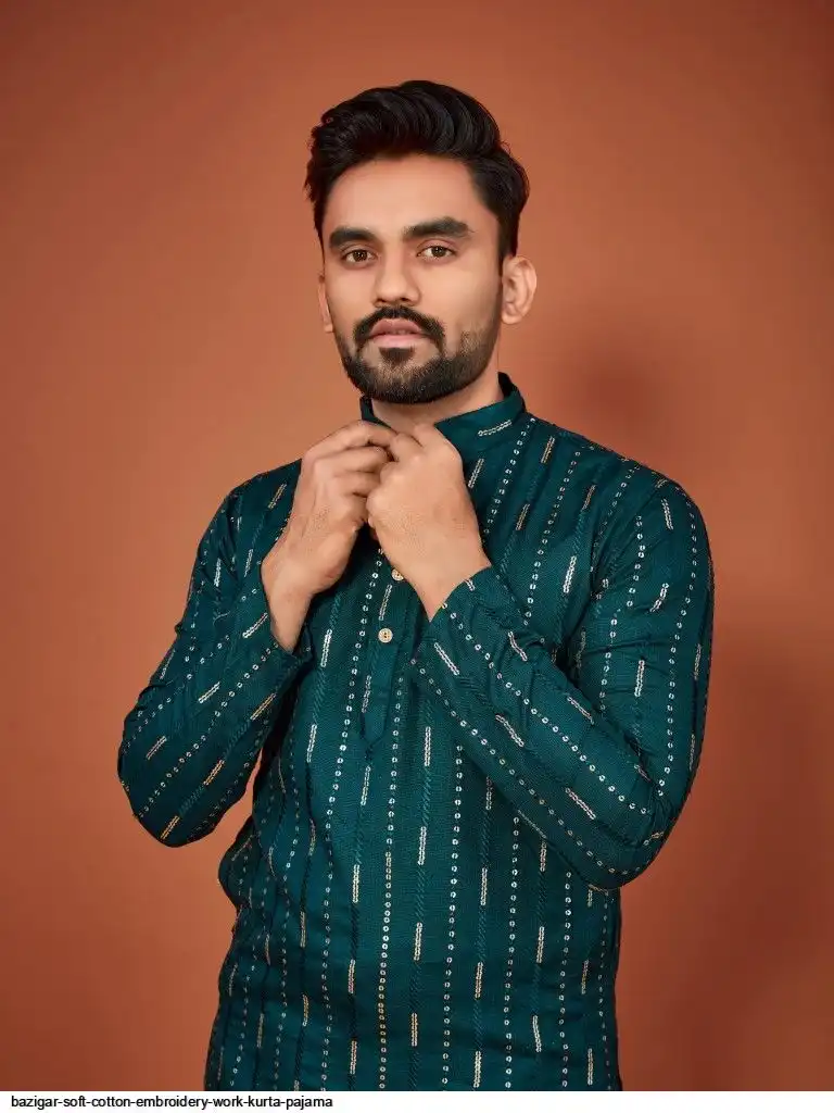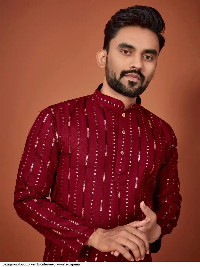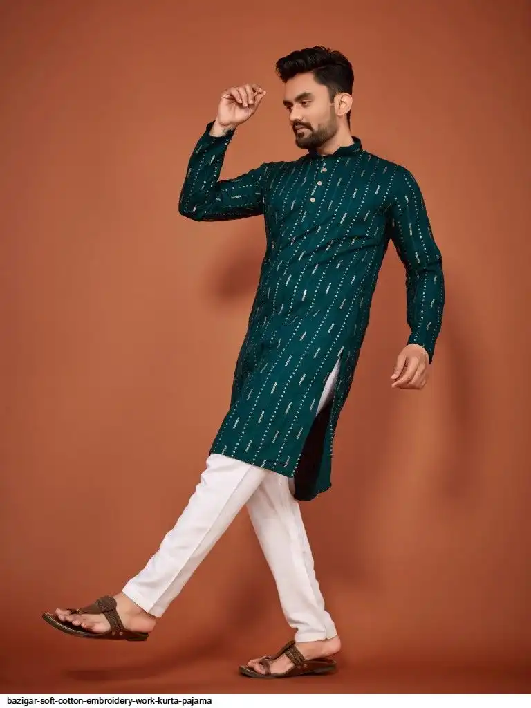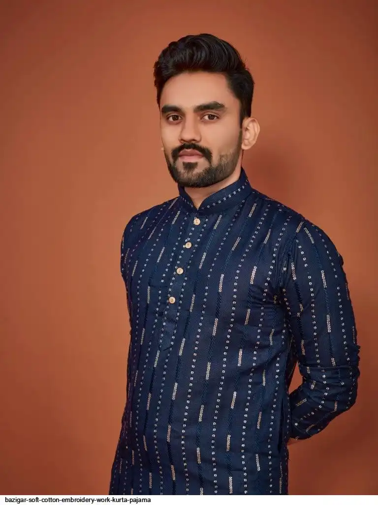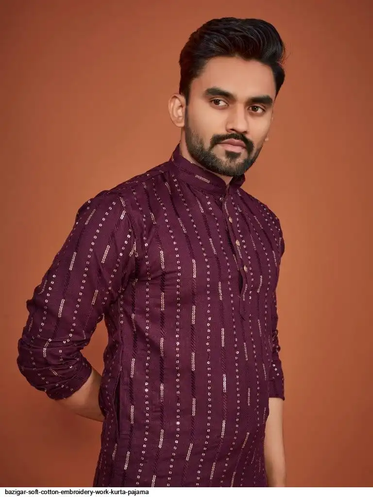 Try a desi boy look with this timeless Multicolour men’s kurta. The dark coloured pure cotton fabric With Embroidery Sequance Work Kurtas. a placket and full sleeves with a straight hemline. Invest in this for the upcoming festive season