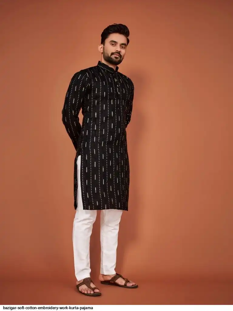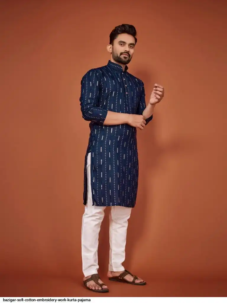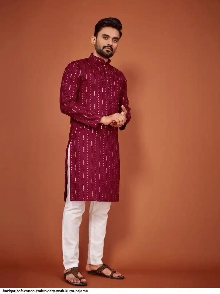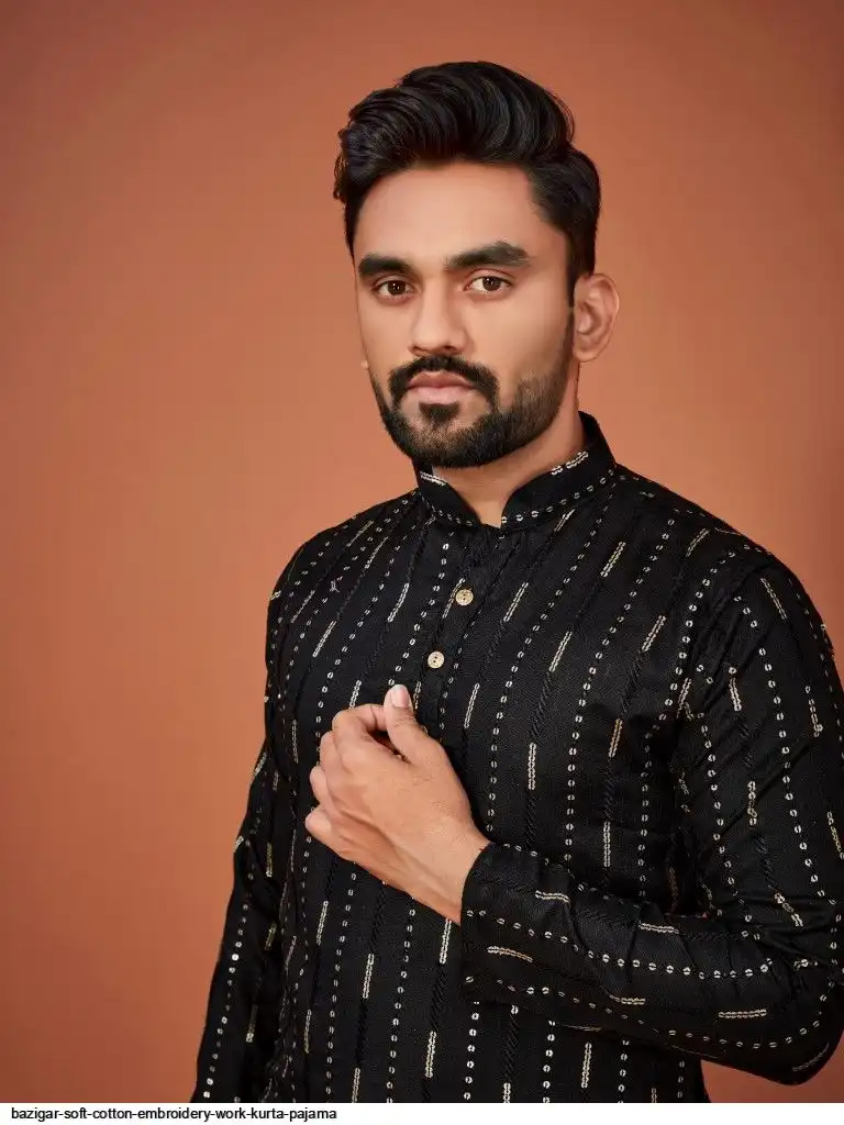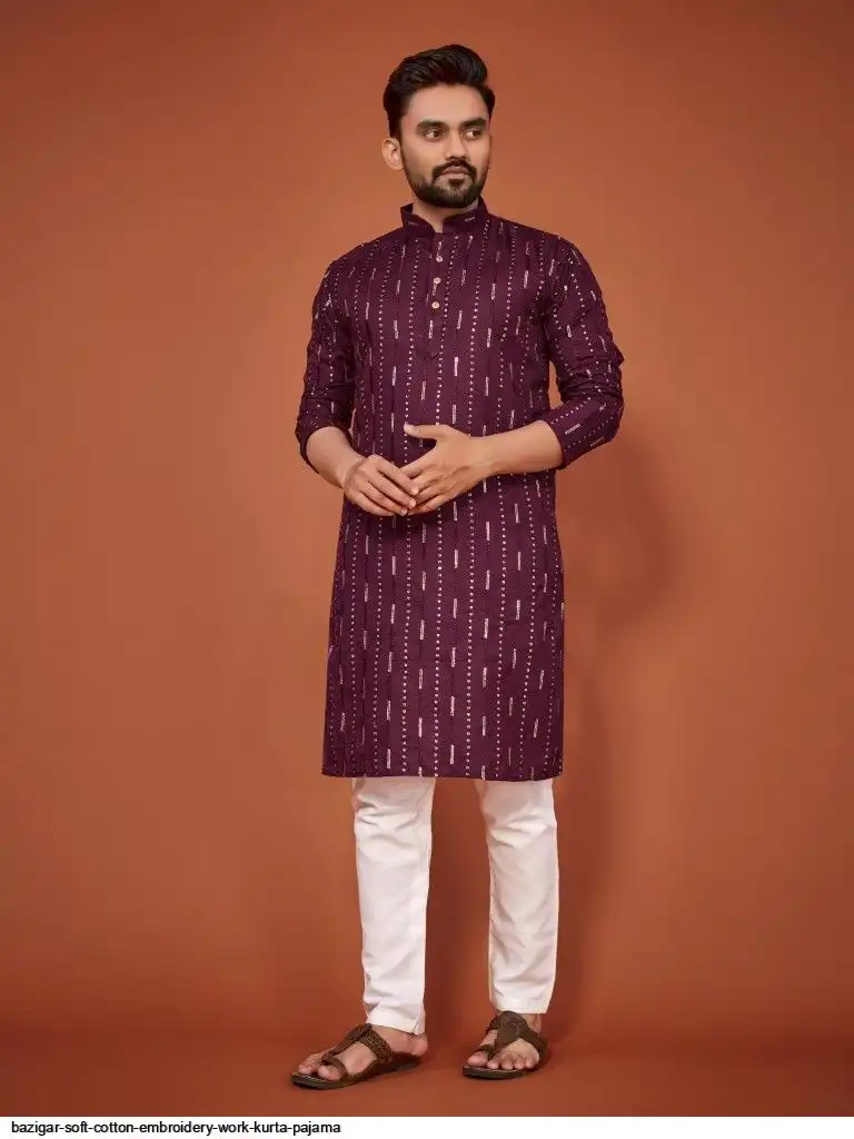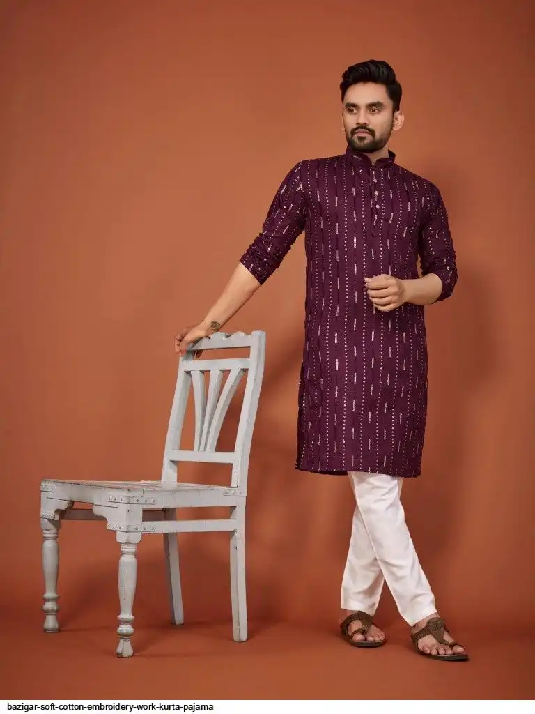 Try a desi boy look with this timeless Multicolour men’s kurta. The dark coloured pure cotton fabric With Embroidery Sequance Work Kurtas. a placket and full sleeves with a straight hemline. Invest in this for the upcoming festive season