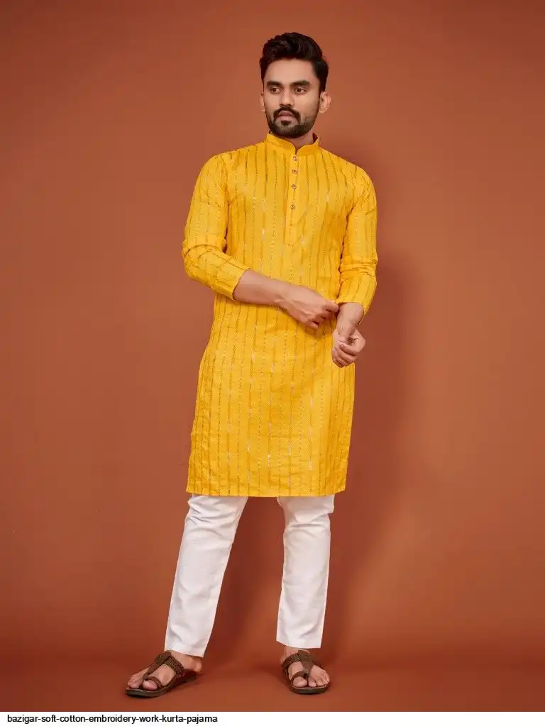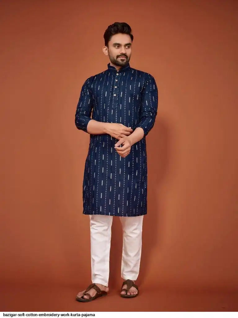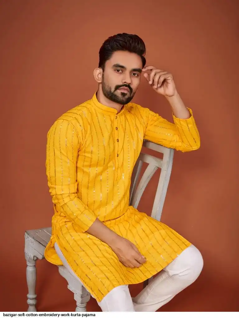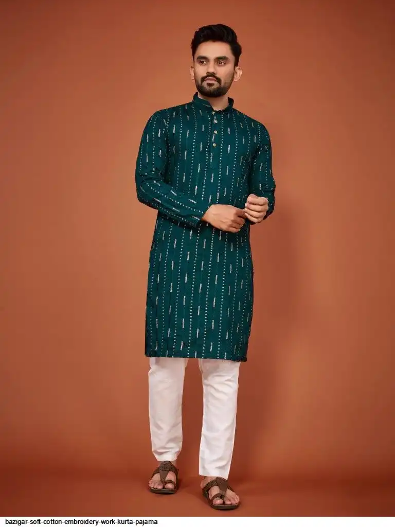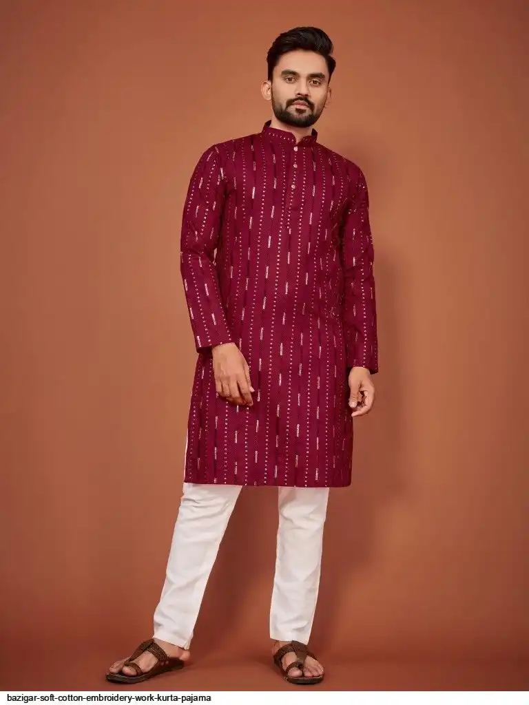 Try a desi boy look with this timeless Multicolour men’s kurta. The dark coloured pure cotton fabric With Embroidery Sequance Work Kurtas. a placket and full sleeves with a straight hemline. Invest in this for the upcoming festive season