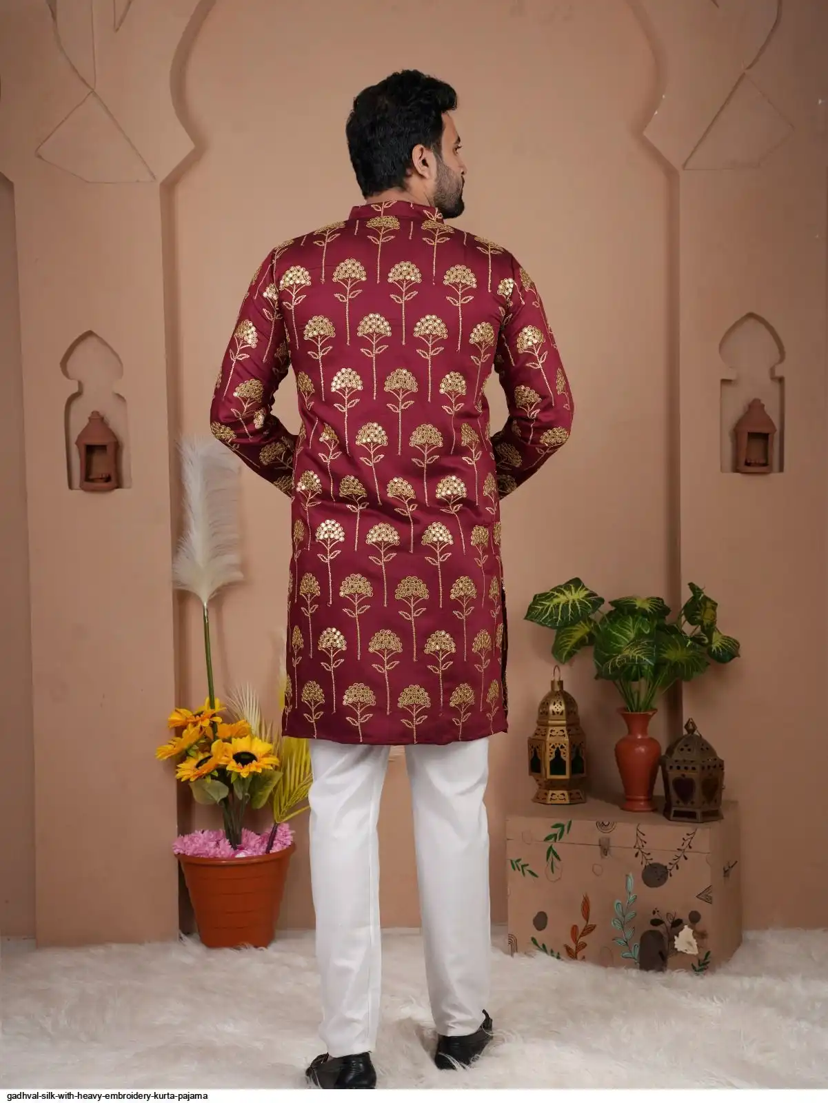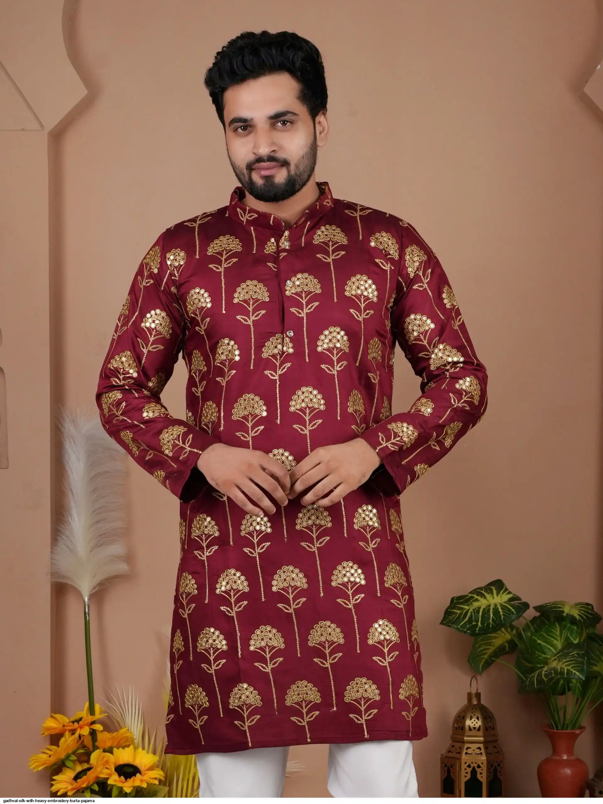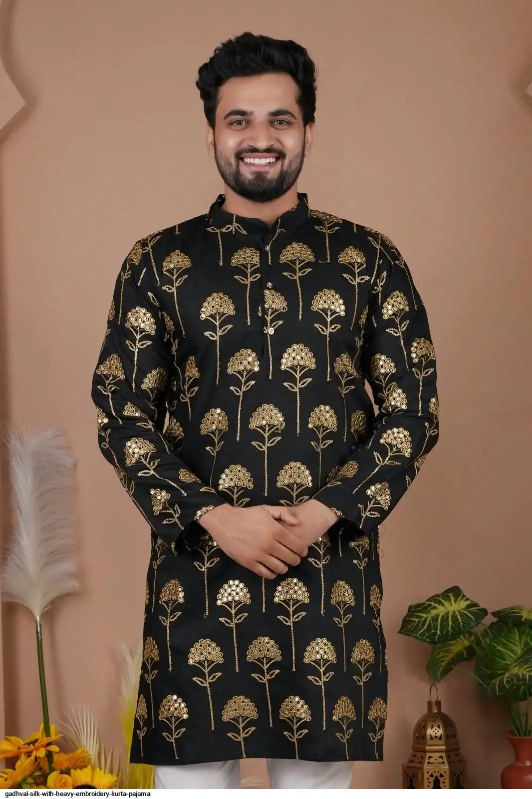 🙋🏻♂️ Kurta : GADHVAL SILK WITH HEAVY EMBROIDERY SEQUENCE WORK