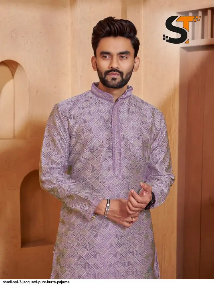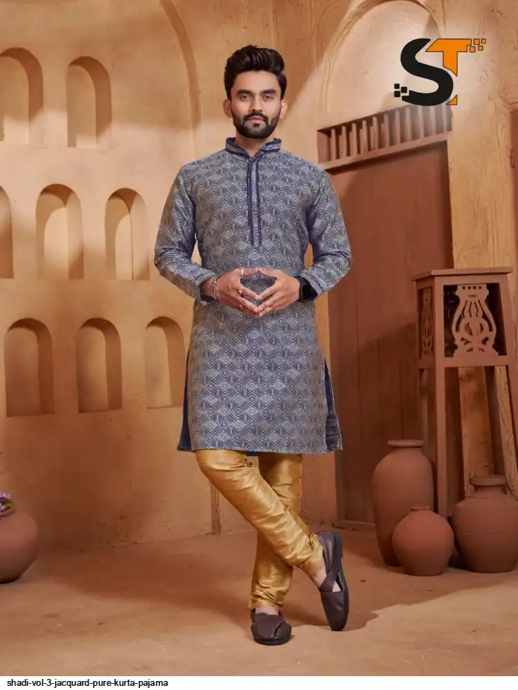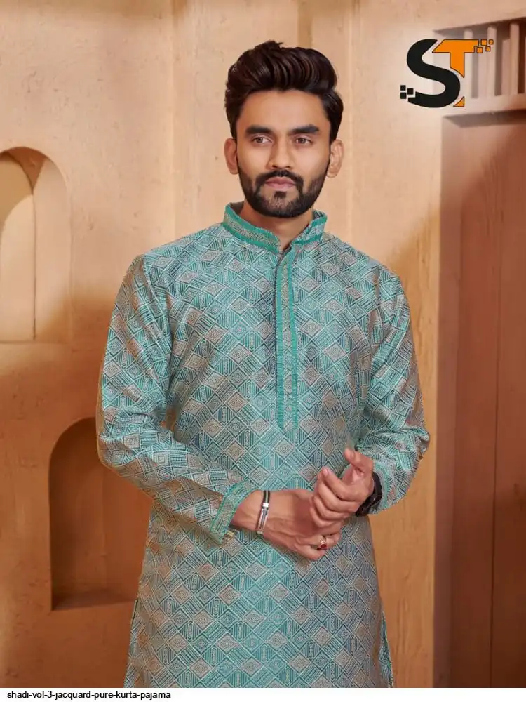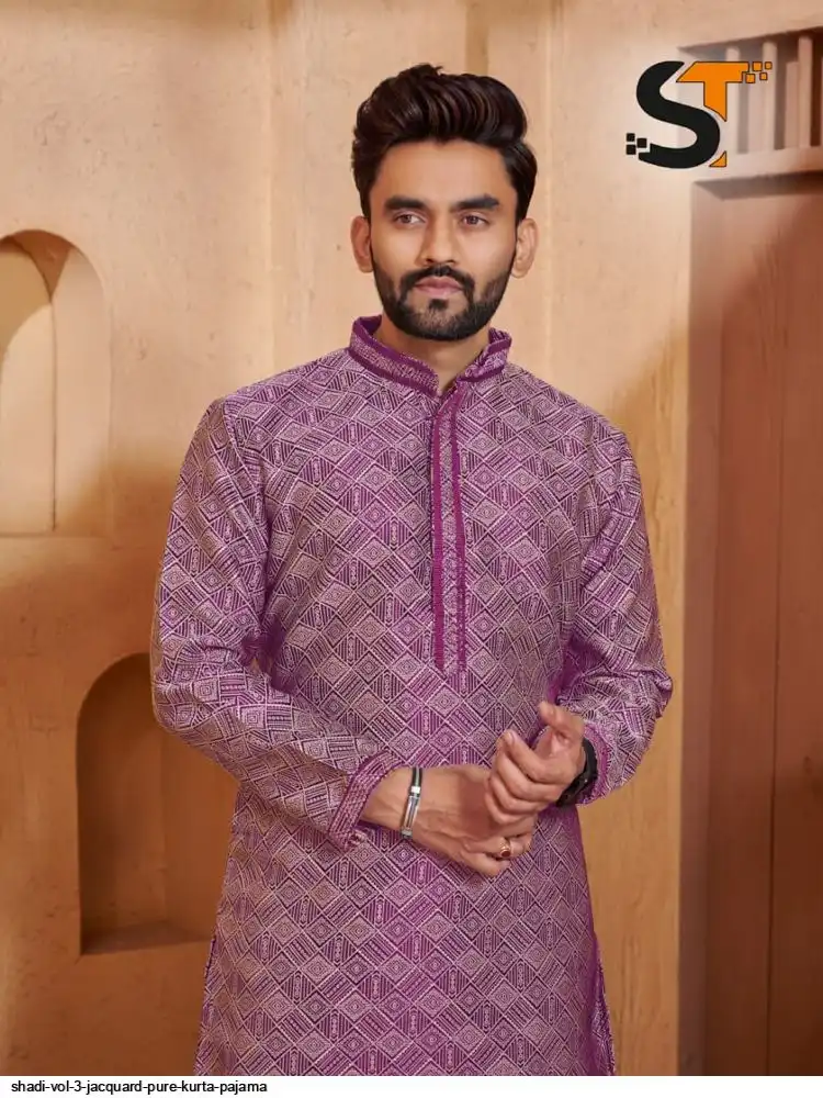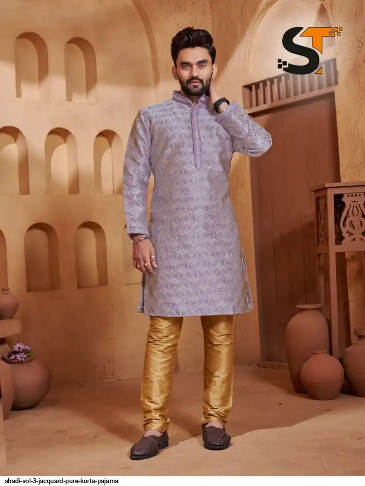 - *Kurta Fabric:* Luxurious jacquard with beautiful collar and tie design