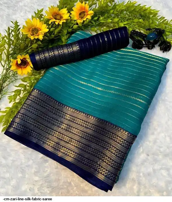 ZARI LINE saree with jecard kanjivaram zari boder & pallu with printed blouse.*