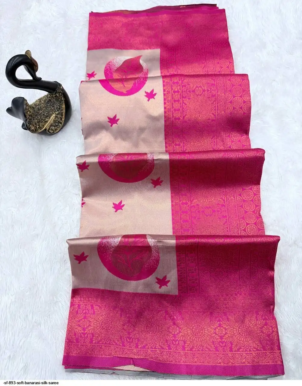 Saree :- Soft And pure banarasi silk saree with FLOWERS AND MINA design all over the saree & zari weaving Rich pallu with zari weaving unique border & heavy rich Pallu.