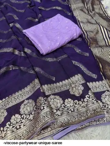 Pure viscose part wear Russian dola saree with heavy embroidered worked with viscose thread
