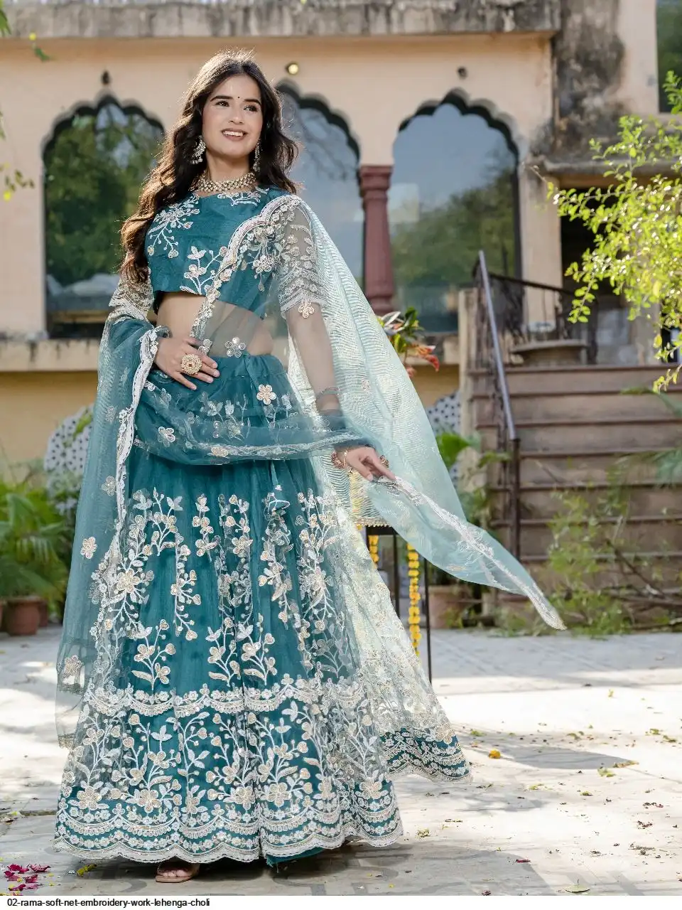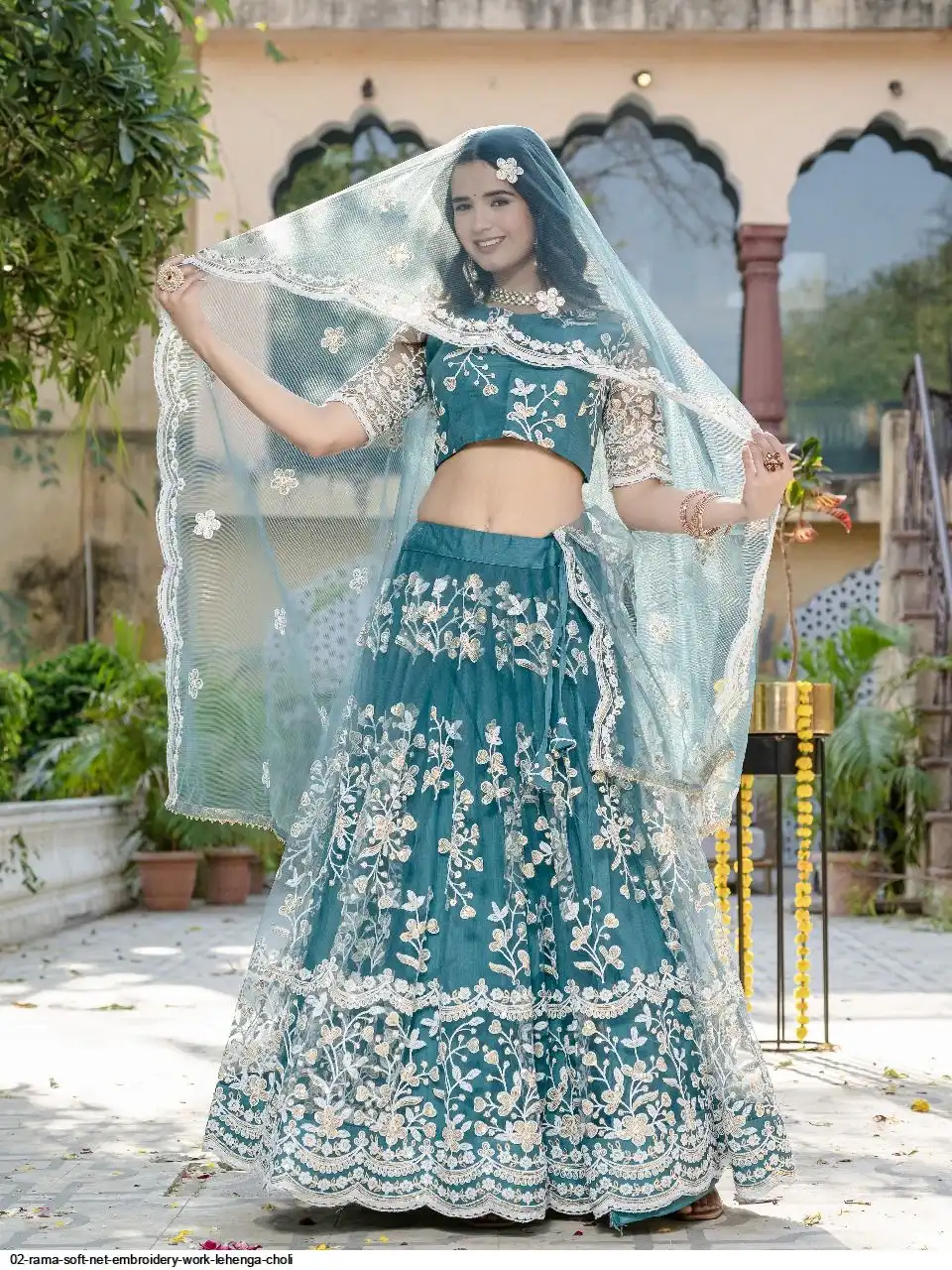 Lehenga Work : Plain With Sequins And Thread Embroidery Work