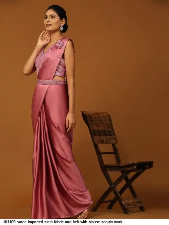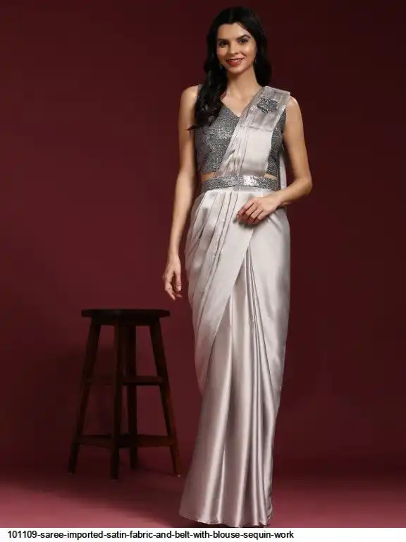 SAREE IMPORTED SATIN FABRIC AND BELT
