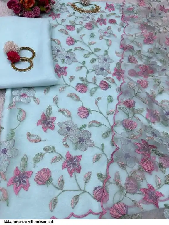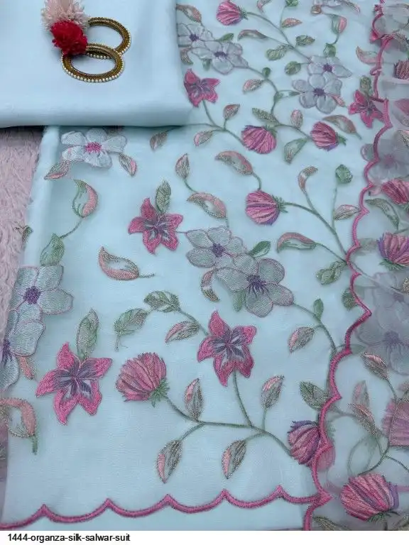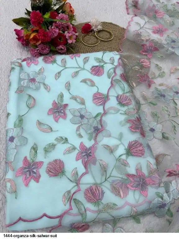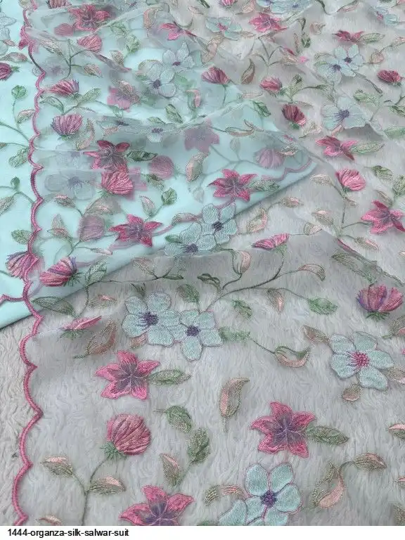 Looking for this same colour beautiful Designer Suit on Heavy Organza Silk Fabric with inner and Thred work and Pent on also Organza Silk Fabric with inner and Dupatta on also Organza Silk Fabric with Thred work.