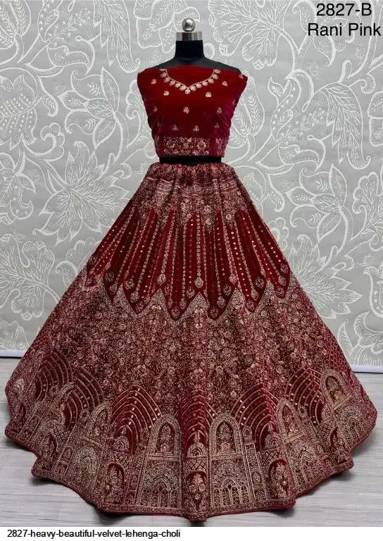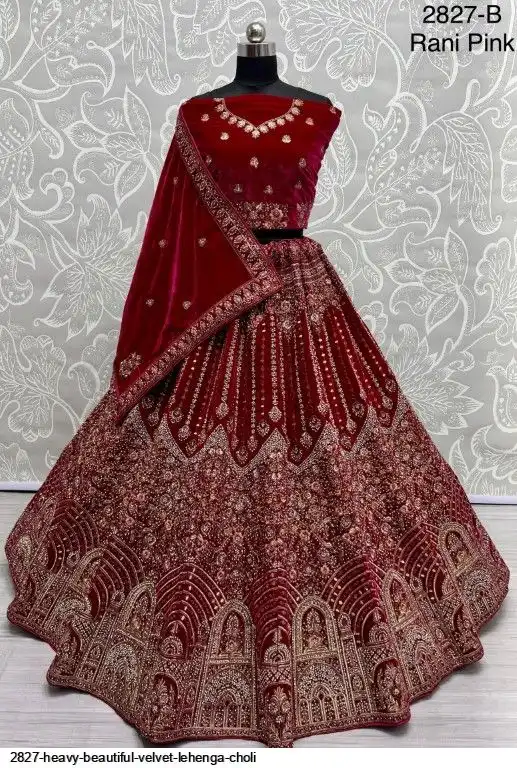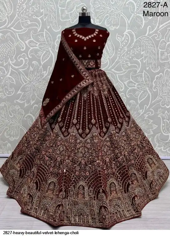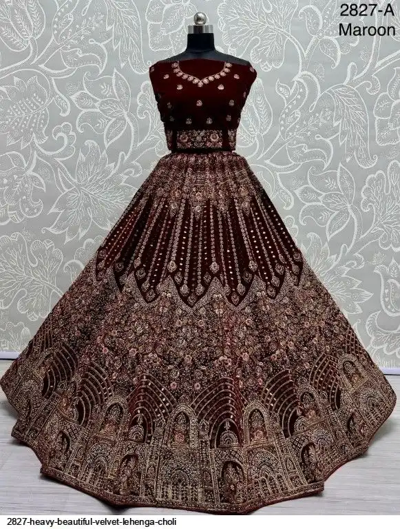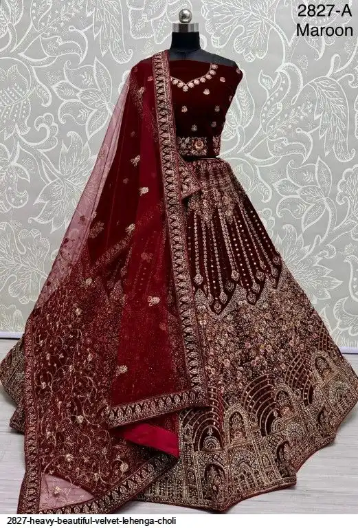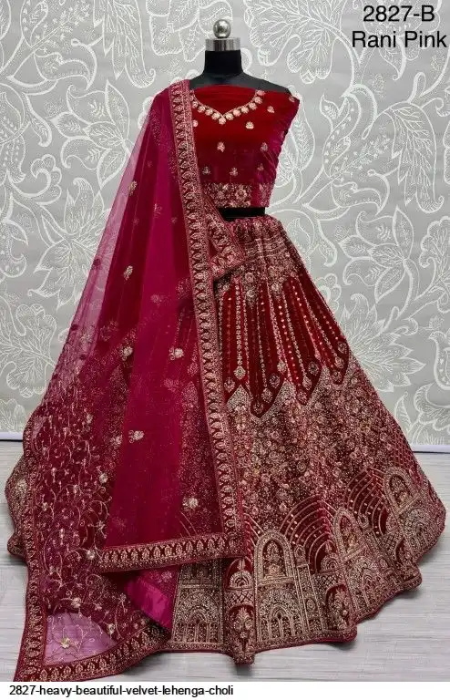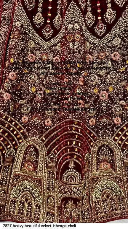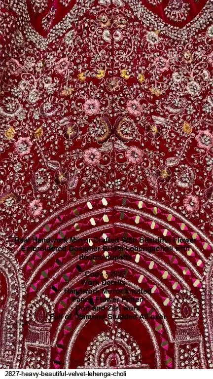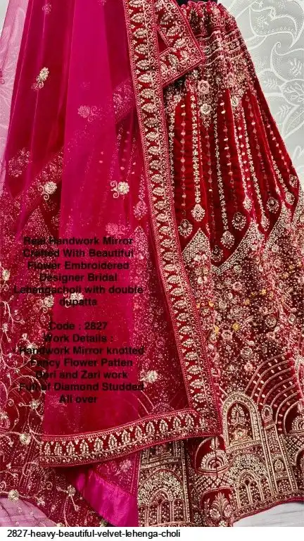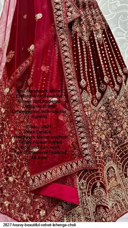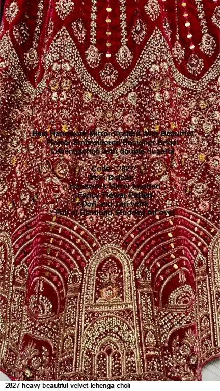 Real Handwork Mirror Crafted With Beautiful Flower Embroidered Designer Bridal Lehenga choli with double dupatta