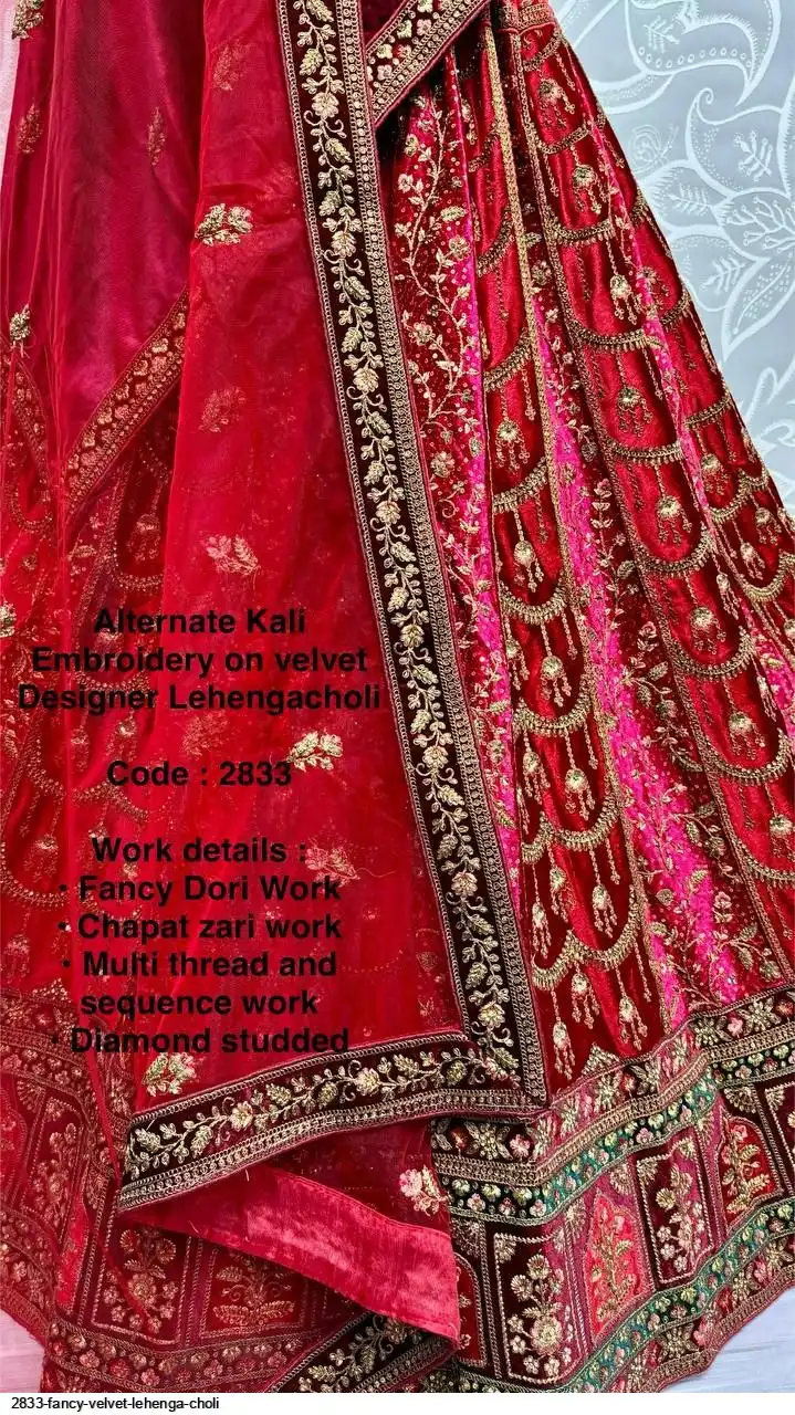 Alternate Kali Embroidery on velvet Designer Lehenga choli
