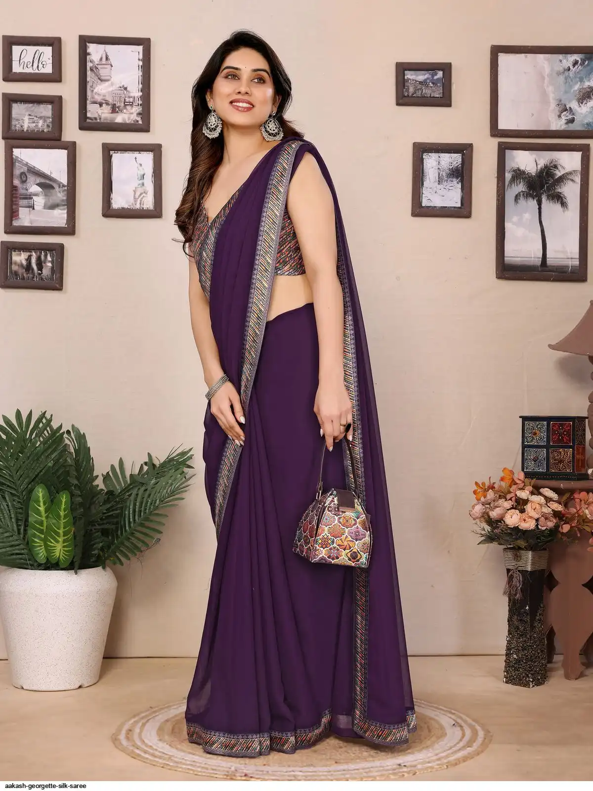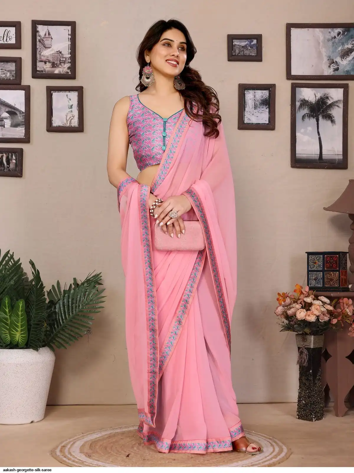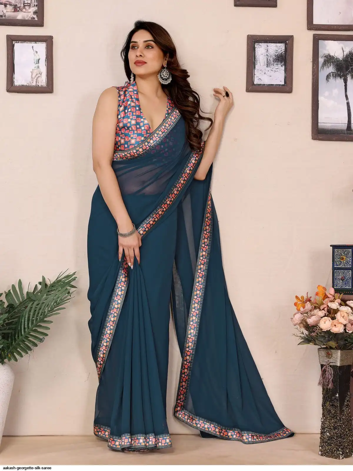 PATTERN-PLAIN SAREE WITH DIGITALPRINT LACE WITH DIGITAL PRINT BLOUSE