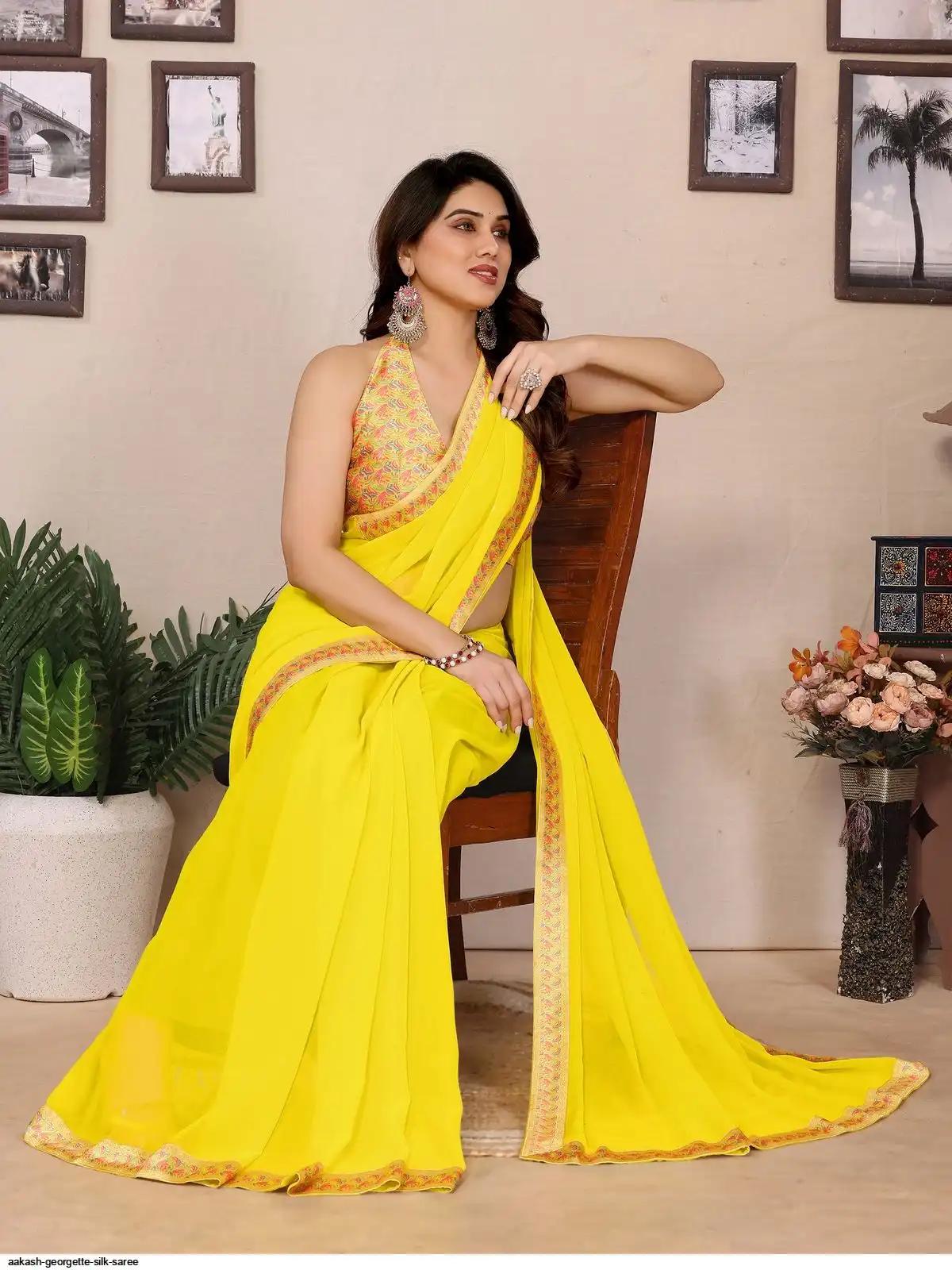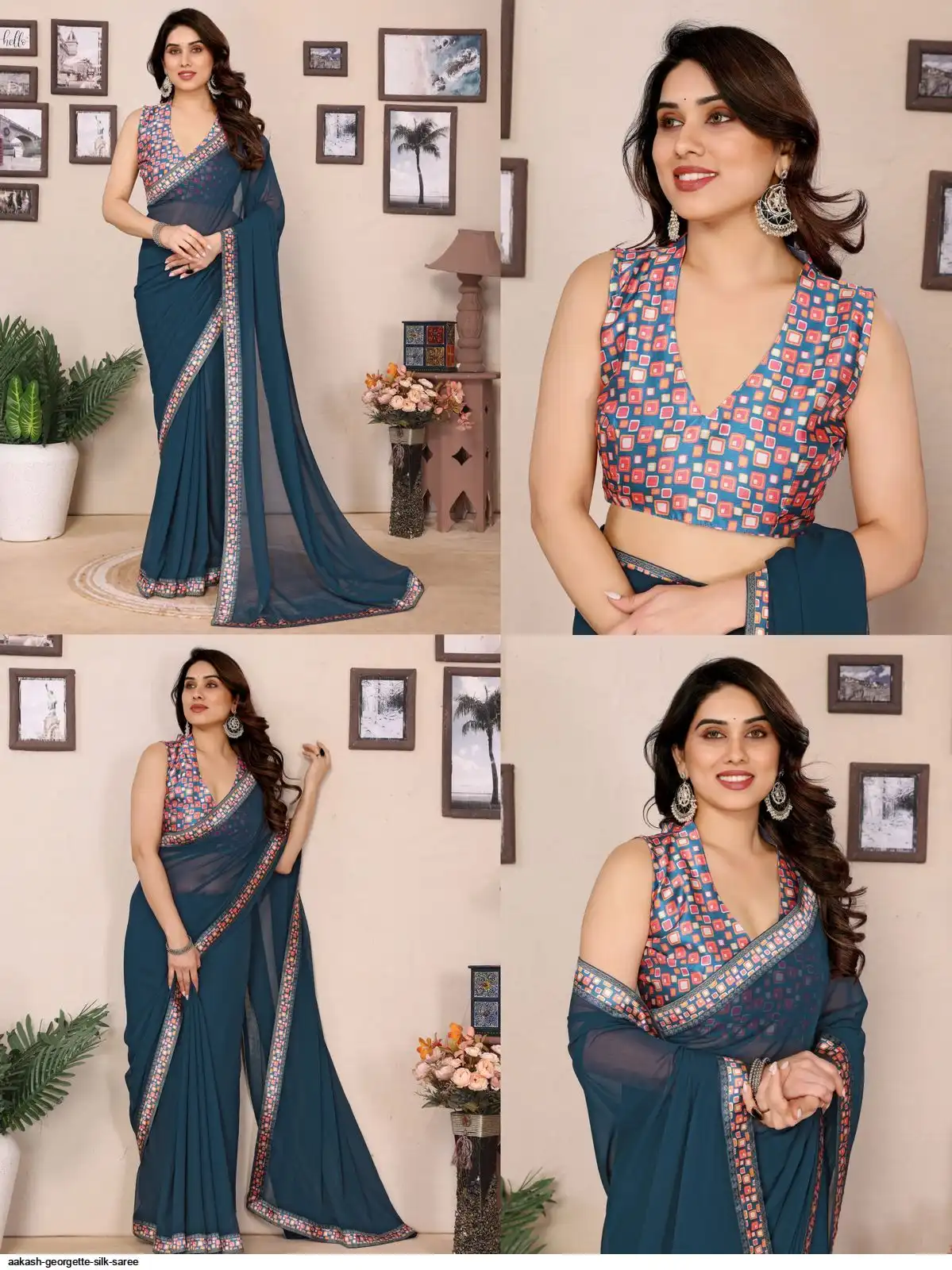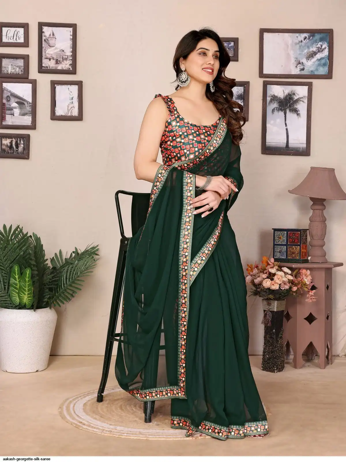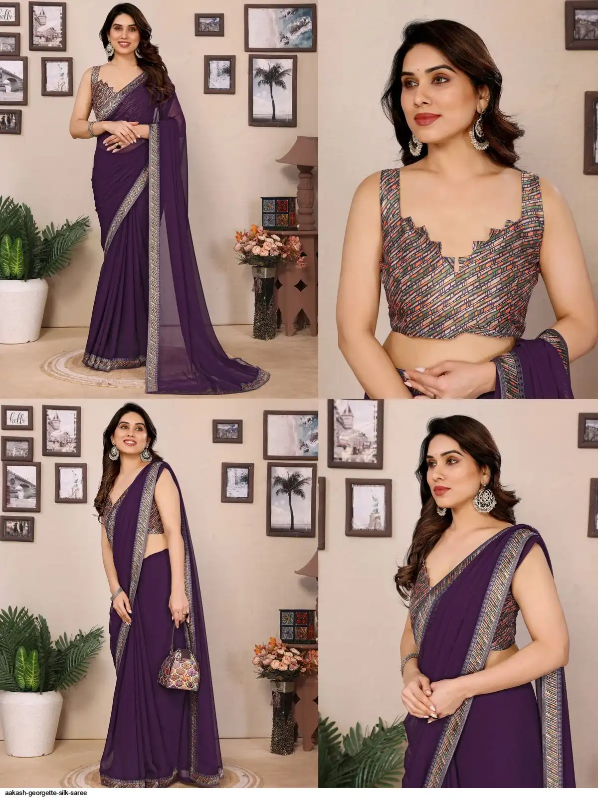 PATTERN-PLAIN SAREE WITH DIGITALPRINT LACE WITH DIGITAL PRINT BLOUSE