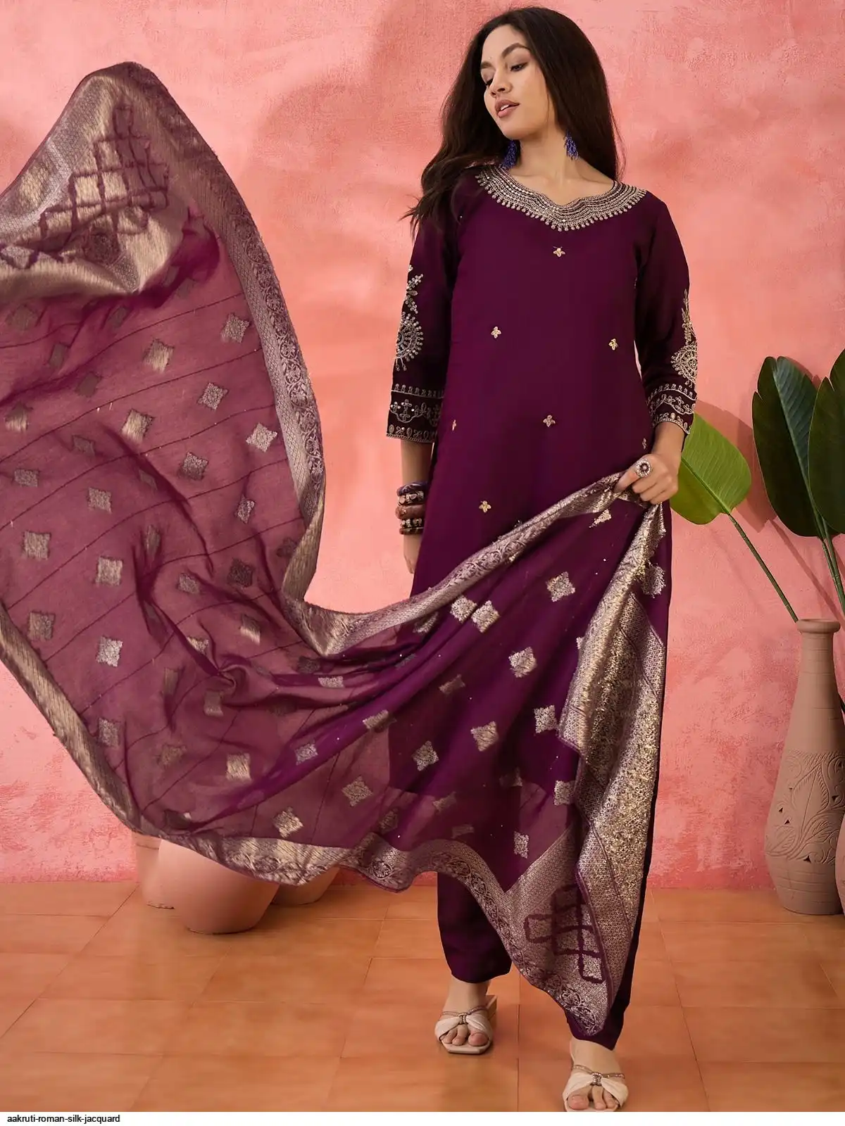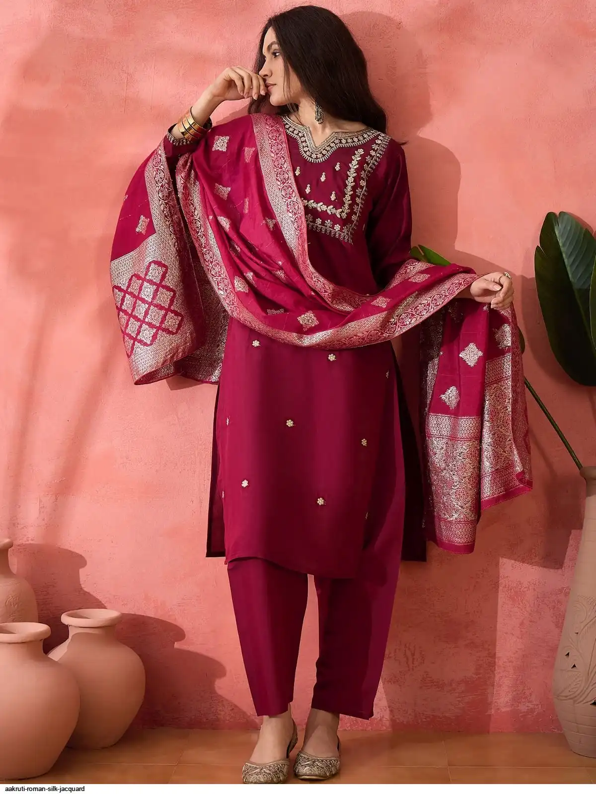 FABRIC - ROMAN SILK WITH JACQUARD DUPATTA