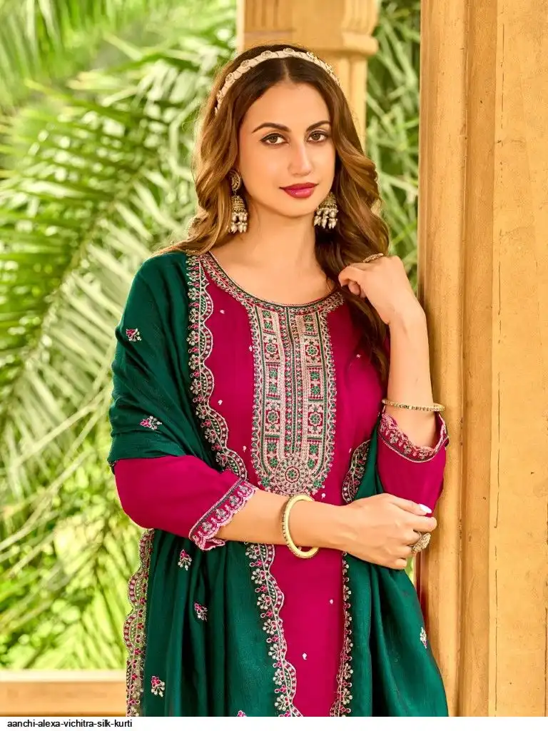 DUPATTA:VICHITRA SILK FANCY CONTRAST DUPATTA WORK