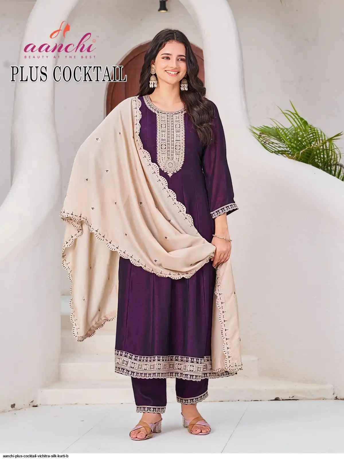 AANCHI PLUS COCKTAIL VICHITRA SILK KURTI B