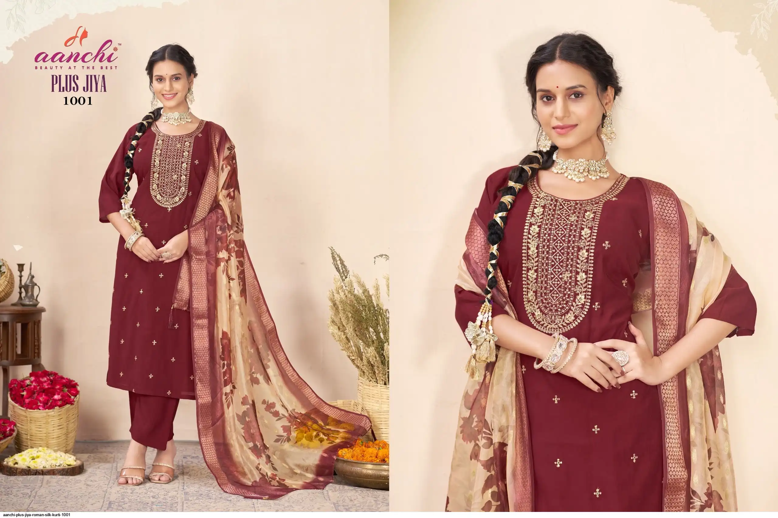 AANCHI PLUS JIYA ROMAN SILK KURTI 1001