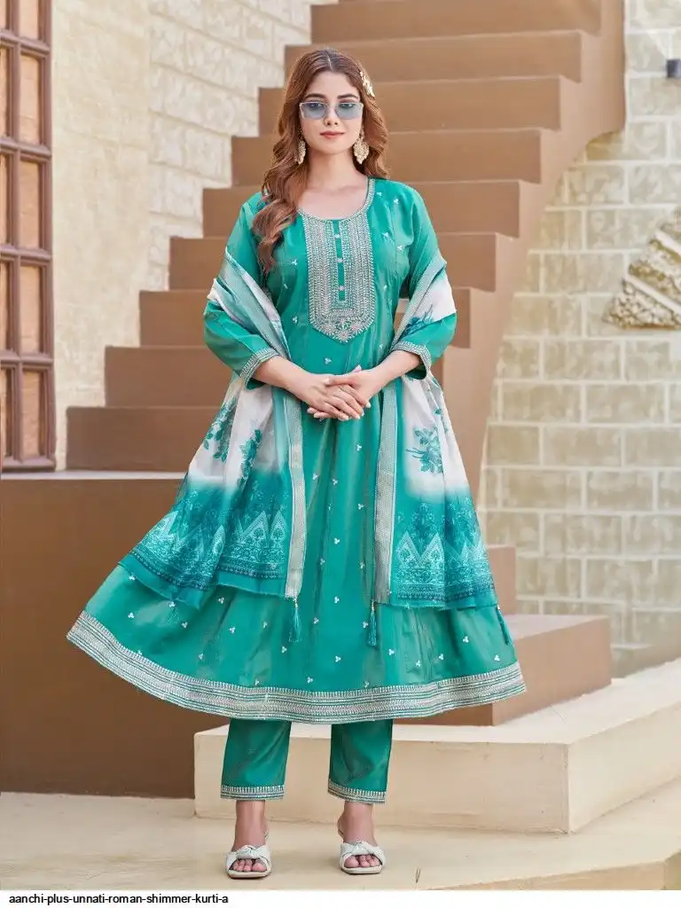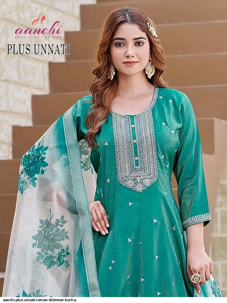 AANCHI PLUS UNNATI ROMAN SHIMMER KURTI A