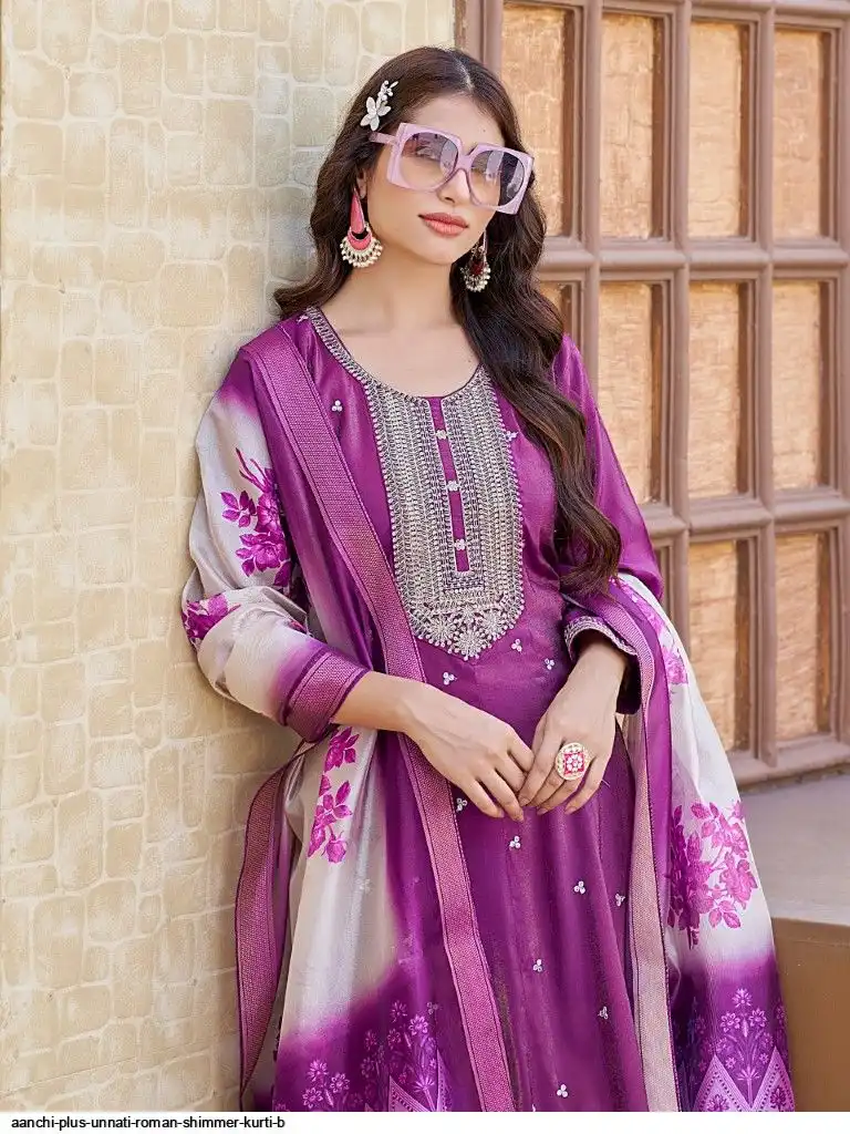 AANCHI PLUS UNNATI ROMAN SHIMMER KURTI B