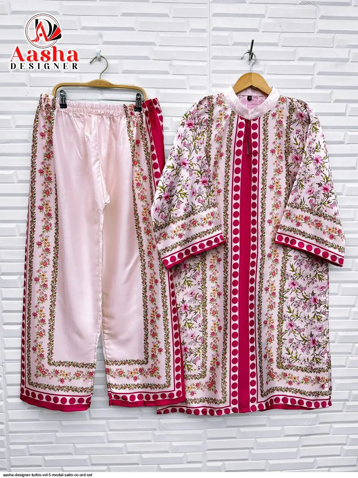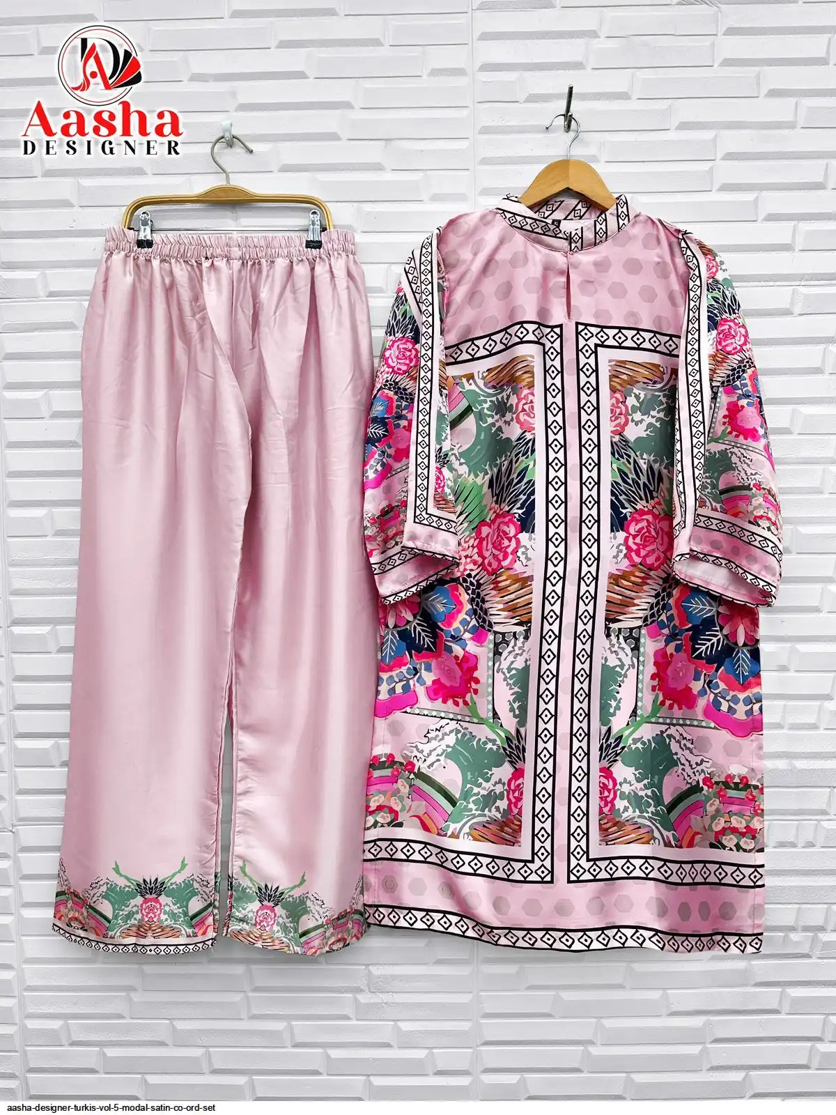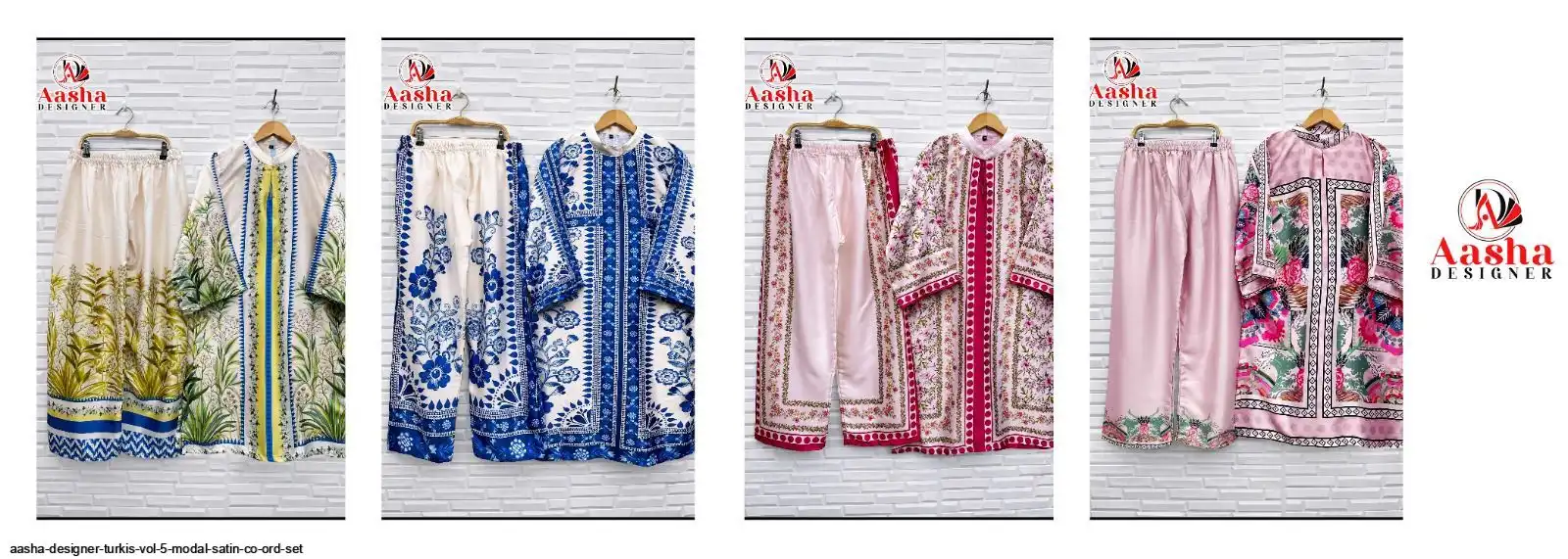 AASHA DESIGNER TURKIS VOL 5 MODAL SATIN CO ORD SET