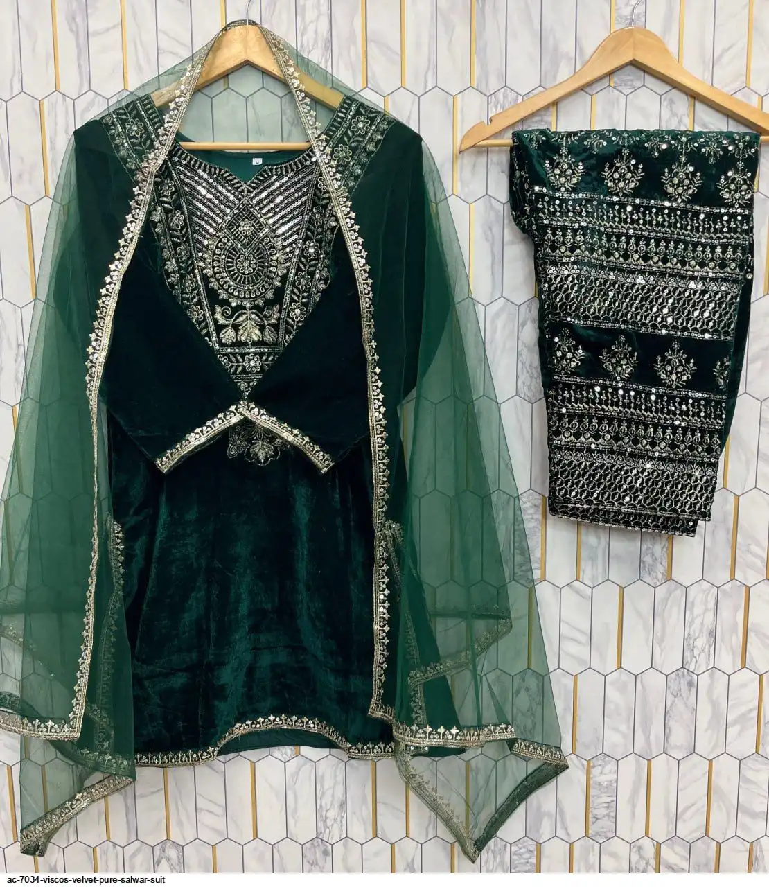 THIS SEASON WEAR DESIGNER STYLEYLISH VELVET SEQUENCE EMBROIDERY WORK SUIT PANT WITH DUPATTA