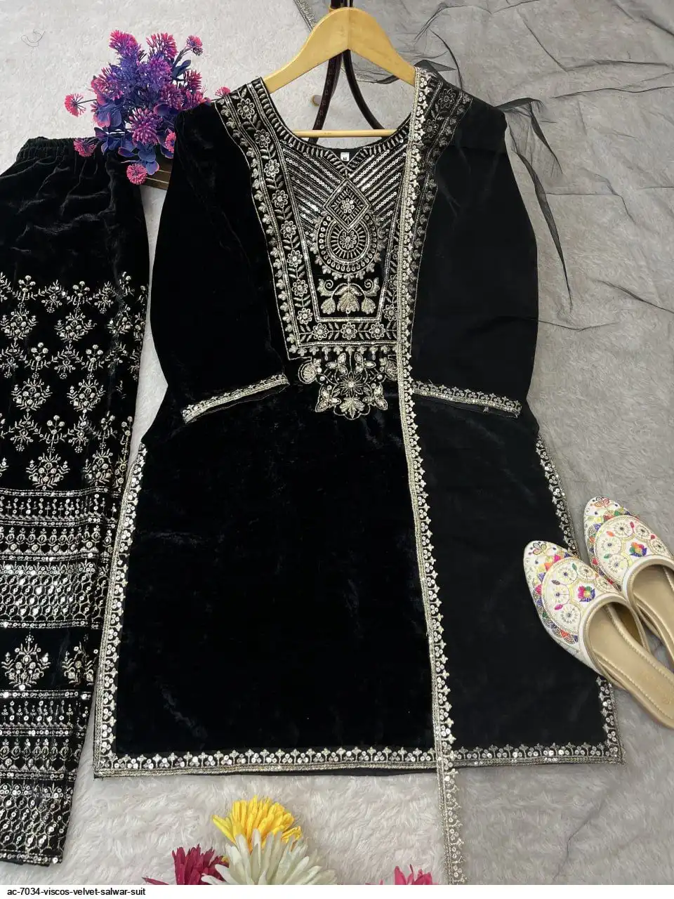 THIS SEASON WEAR DESIGNER STYLEYLISH VELVET SEQUENCE EMBROIDERY WORK SUIT PANT WITH DUPATTA