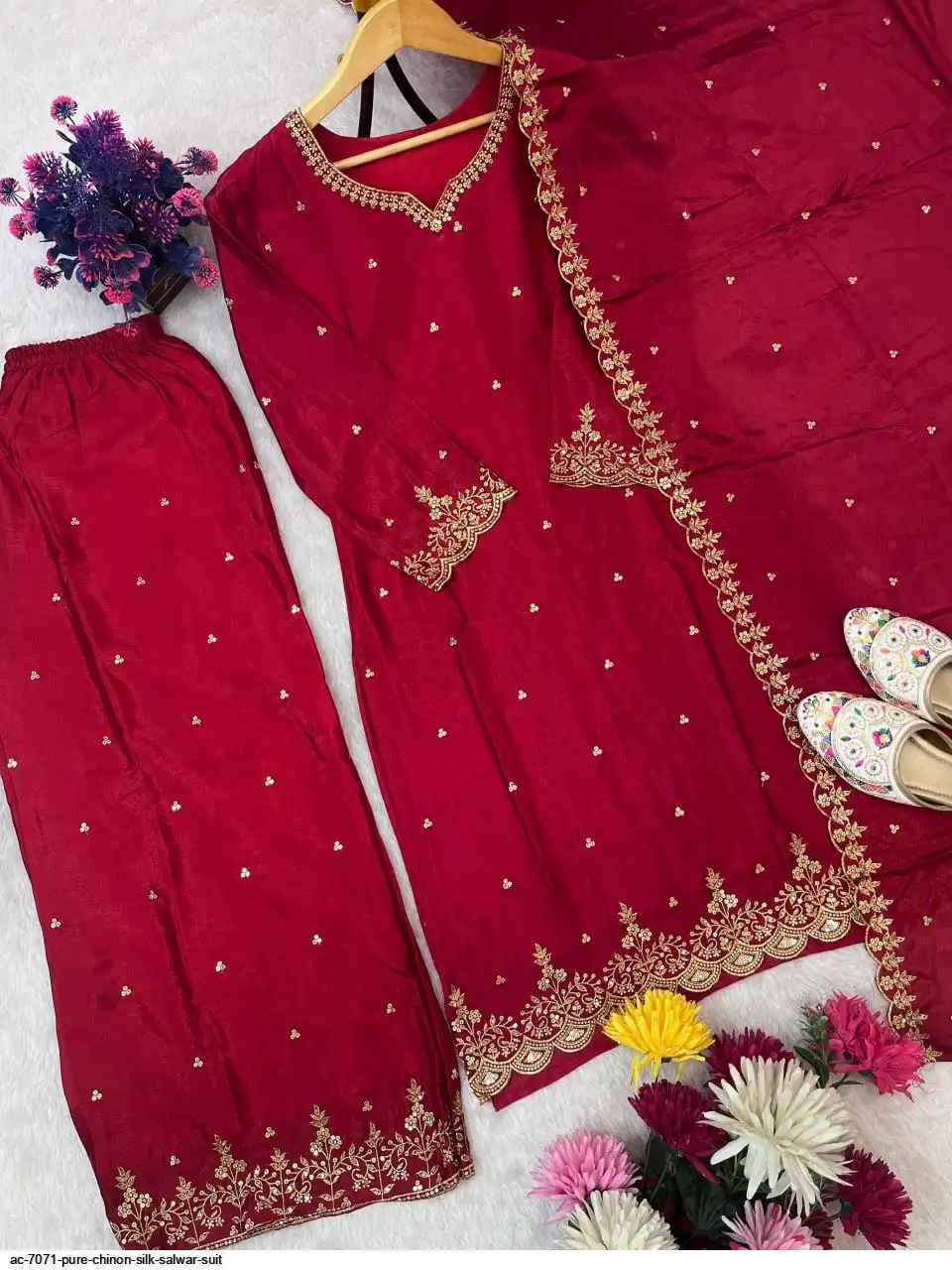 FESTIVAL SPECIAL SEQUENCE EMBROIDERY ON SILK FABRIC TOP AND PLAZZO WITH DUPATTA SET