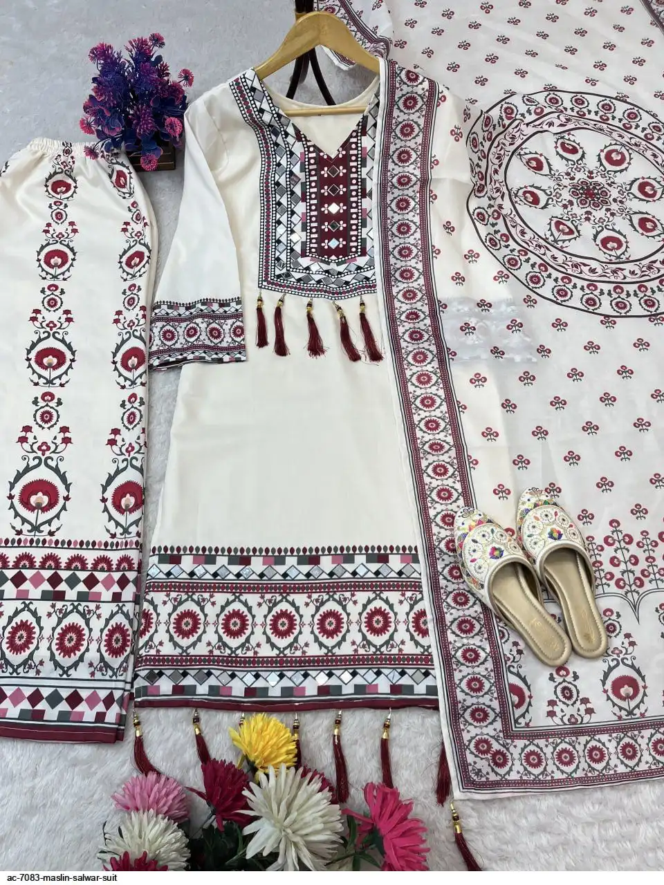 WORK : DIGITAL PRINT WITH LATKAN AND REAL MIRROR WORK