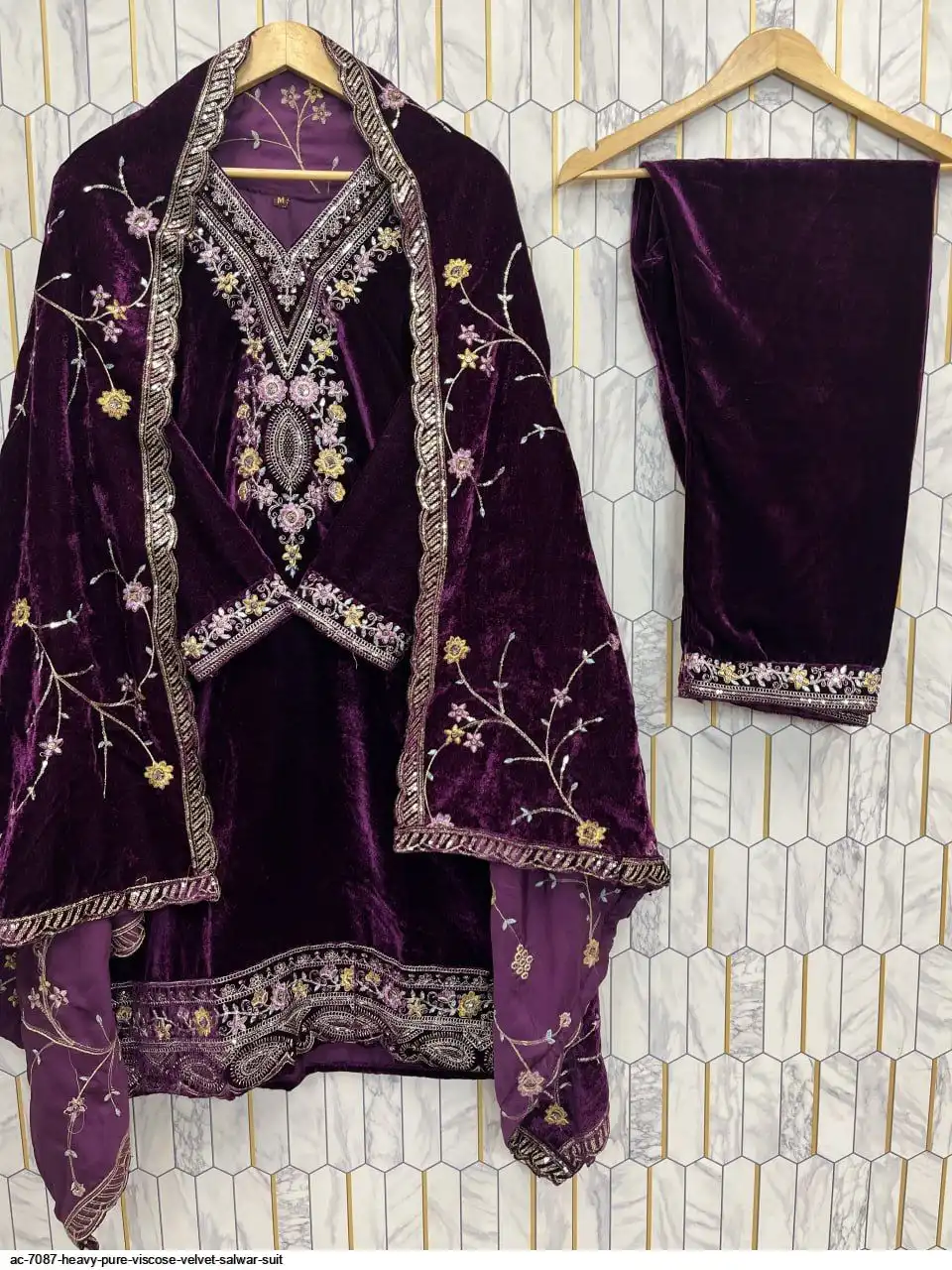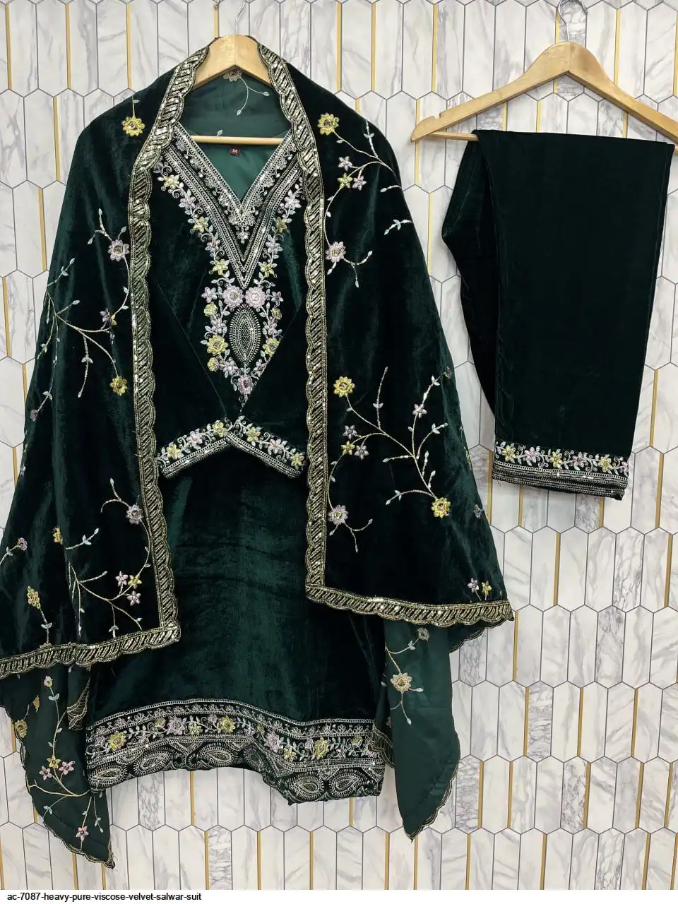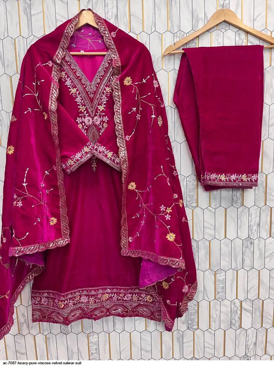 WINTERWEAR SEASON COLLECTION WITH HEAVY PURE VISCOSE VELVET AND HEAVY EMBROIDERY SEQUENCE WORK TOP-BOTTOM AND DUPATTA SET FULLY STITCHED