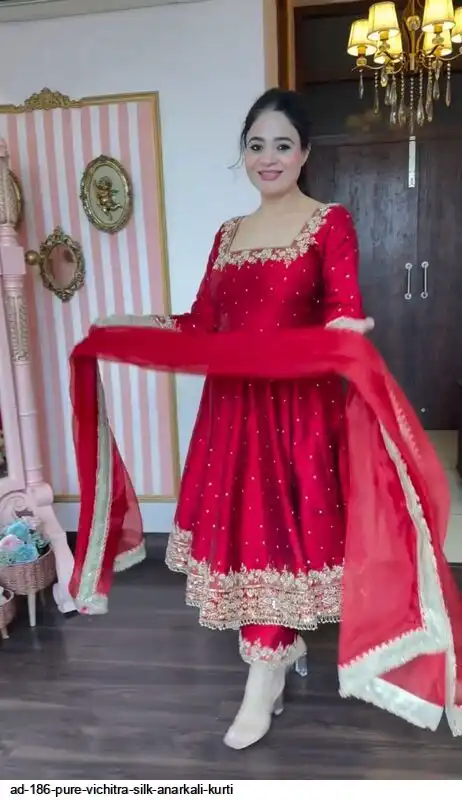 Dupatta Fabric :Heavy Pur Vichitra Silk With Rivet Moti Work With Four Side Fancy Readymed Lace Border