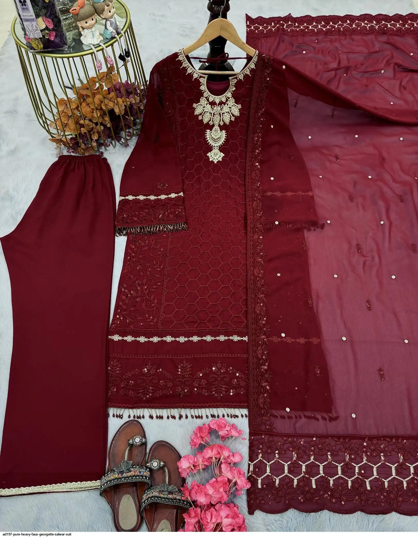 Launching New Đěsigner Party Wear Look Pure Heavy Faux Georgette Top Palazzo & Dupatta Set