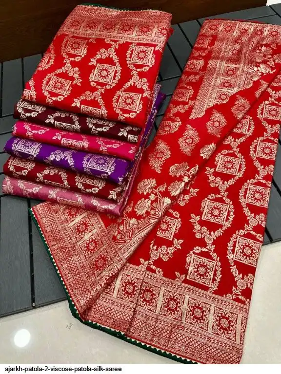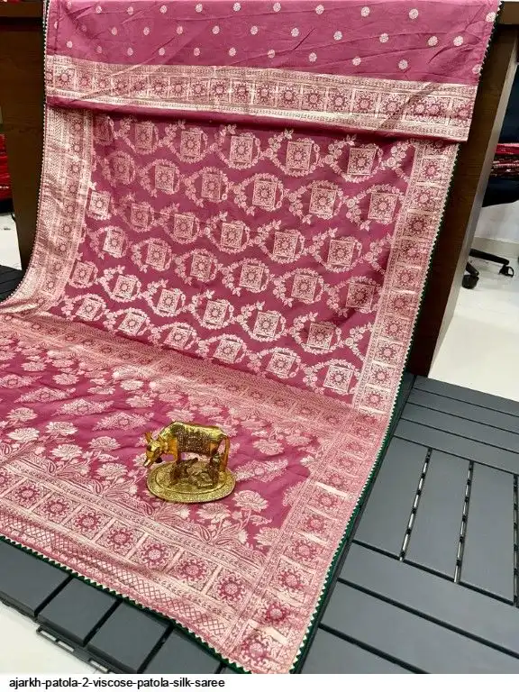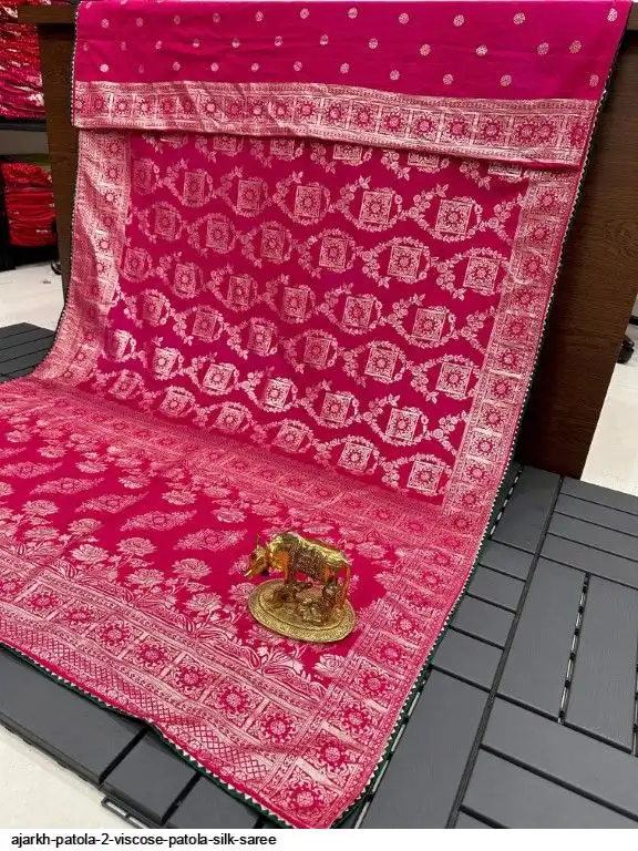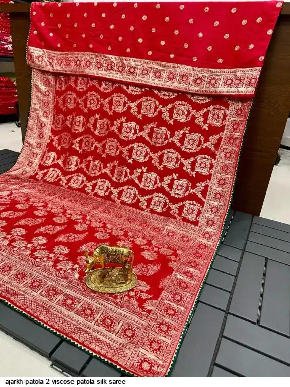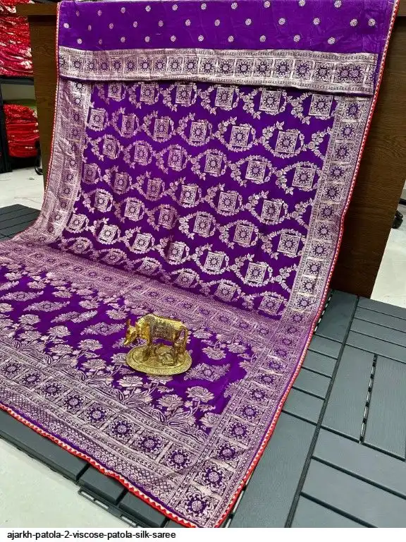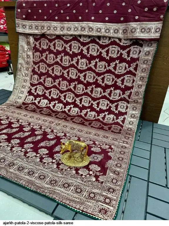 SAREE :~ Luxury Pure Soft Kolkata Ajarkh Patola Silk Viscose Weaving Beautiful Ajarakh Zari Weaving in Saree
